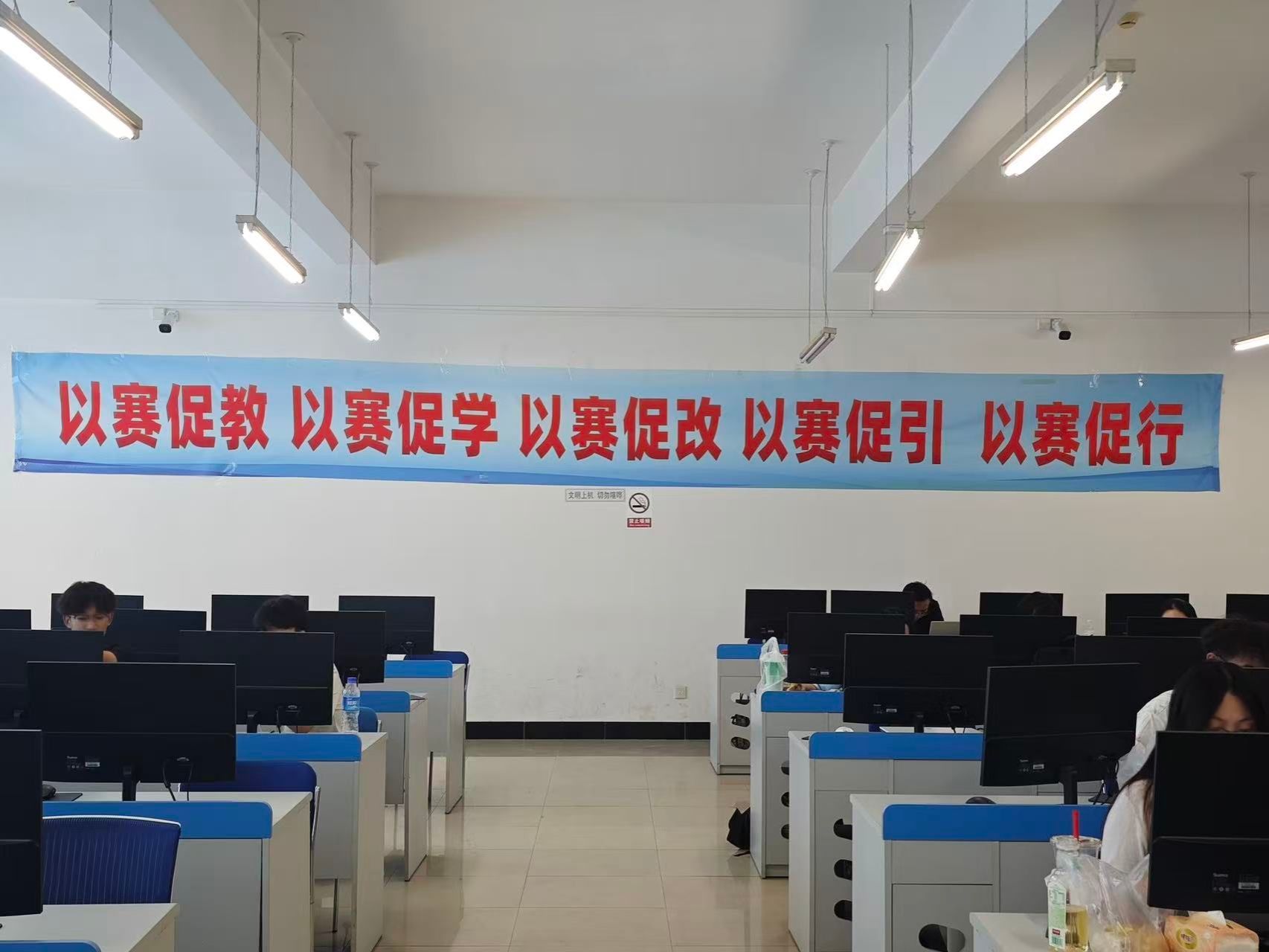 竞赛期间,所有指导教师亲临现场,为参赛同学提供支持及鼓励,勉励大家顽强拼搏、全力以赴,争取更好成绩,为校争光。