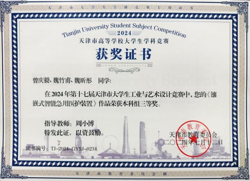 近日,2024年第十七届天津市大学生工业与艺术设计竞赛获奖名单正式揭晓。本次大赛得到了我院广大师生的大力支持和积极响应,共79组参赛选手踊跃参与,经过激烈角逐,我院师生获二等奖1项、三等奖11项。