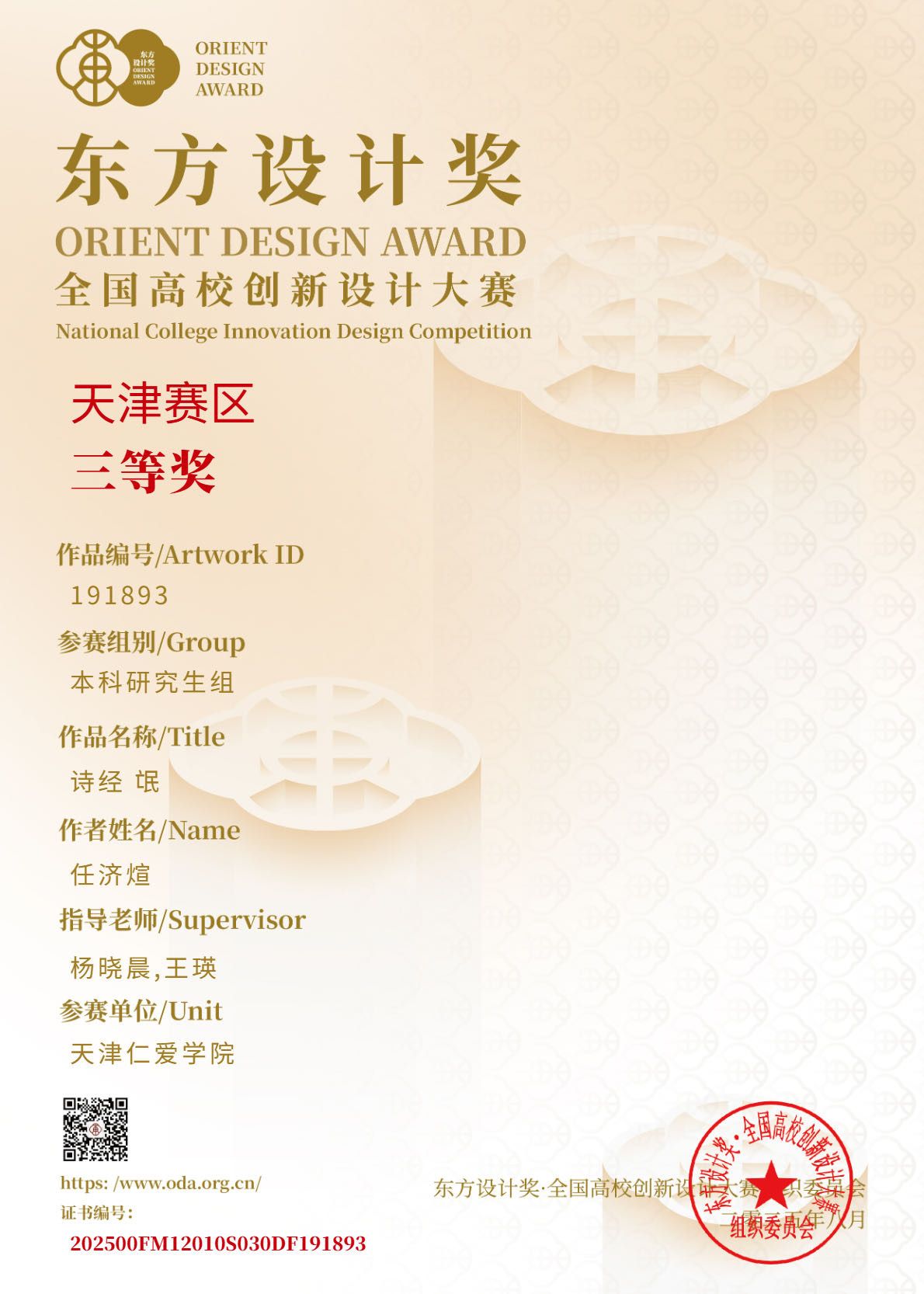 上一条:喜报┃热烈祝贺我院学子在2025年第13届未来设计师·全国高校数字艺术设计大赛(NCDA)-天津赛区竞赛中斩获55项佳绩
