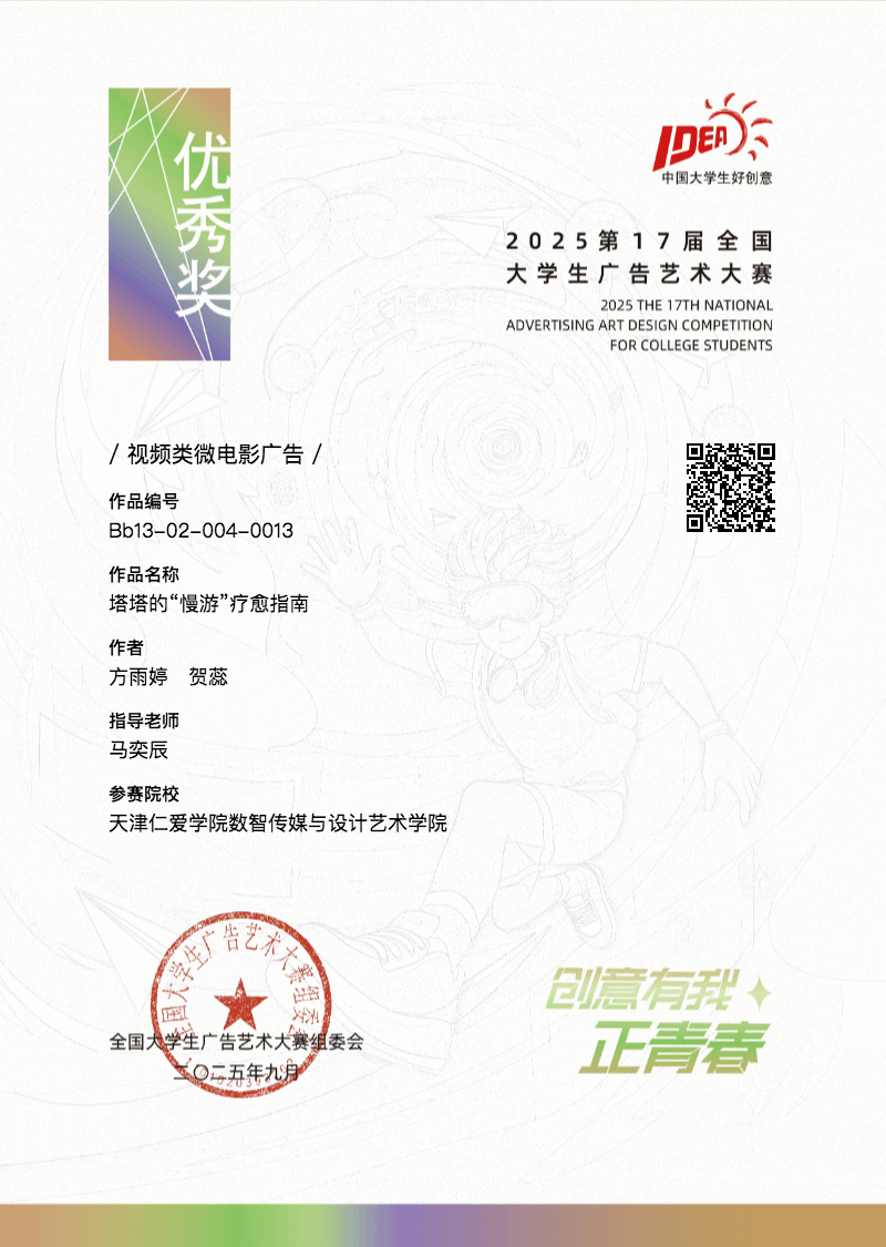 近日,2025年第17届全国大学生广告艺术大赛天津赛区大赛获奖名单正式揭晓。本次大赛得到了我院广大师生的大力支持和积极响应,近80名参赛选手踊跃参与,经过激烈角逐,我院的荣获国家级优秀奖3项,荣获天津赛区二等奖3项、三等奖5项。
