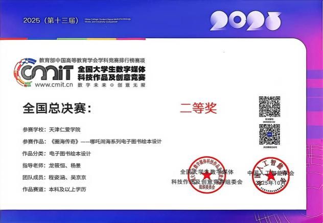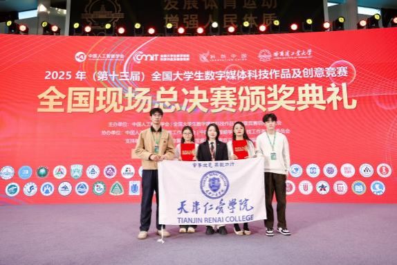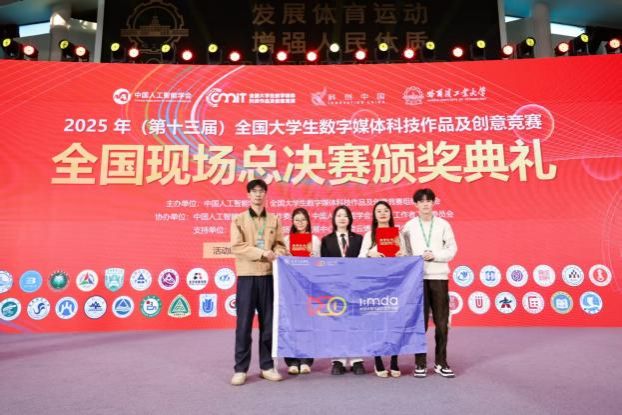 2025年10月26日,第十三届全国大学生数字媒体科技作品及创意竞赛全国总决赛在哈尔滨工业大学圆满落幕,经过激烈角逐,我校数智传媒与设计艺术学院选派的两只学生团队凭借出色的创新设计与技术应用能力,从众多参赛队伍中脱颖而出,分别荣获全国一等奖和二等奖的优异成绩。