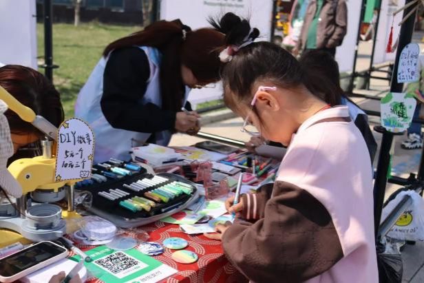 本次活动是学院推动“专业技术活化”的生动实践。依托专业优势,师生团队将课堂理论转化为市场应用,在现场设置了香囊DIY、哪吒“吧唧”(徽章)制作及漆扇手绘三大互动板块。志愿者们运用专业技能,指导游客将传统美学融入现代文创产品制作,让静态的设计方案在动态的市集互动中转化为具象的文创成果,实现了“作业—作品—产品”的链式转化。