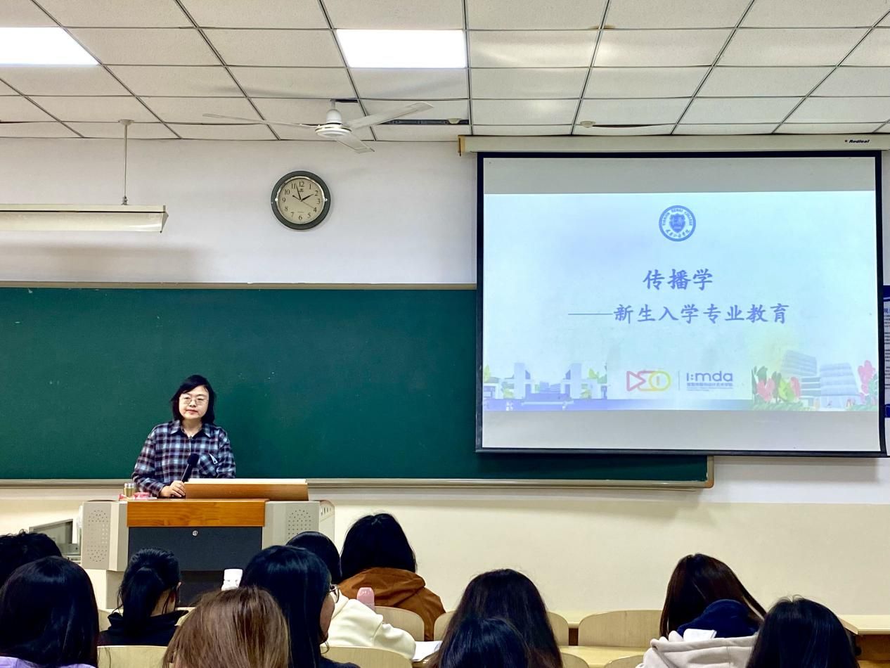 为使2025级新生深入了解专业内涵,明确学习方向,10月20日,数智传媒与设计艺术学院在四教112教室举办了传播学新生专业教育讲座。本次讲座由传播学专业负责人王千金老师主讲,围绕教育目标、课程体系与就业前景,为新生带来了一场内容详实的专业介绍。