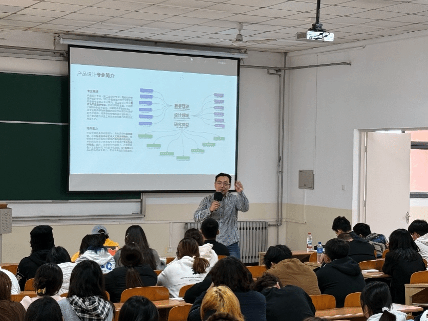 活动伊始,周小博老师从专业本质出发,通过丰富的案例解析,帮助新生准确理解产品设计的学科定位。他阐释了“设计不是无中生有,而是改变已有”的核心理念,强调产品设计是通过创新性改变物的存在方式,满足人们功能、生理、文化与品质需求的创造性活动。这一讲解为新生构建了清晰的专业认知基础。