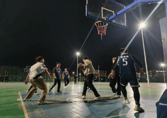 开幕式上,知行社区副片区长、数智传媒与设计艺术学院党总支书记王宁致辞,向全体参赛师生致以诚挚问候与美好祝愿。本次比赛吸引了多支师生队伍参与,采用5v5对抗赛制。赛场上,队员们默契配合、奋力拼搏,每一次攻防转换都迸发着青春的活力;场边工作人员全程坚守岗位、默默奉献,为赛事顺利进行提供了有力保障。赛程紧凑激烈,即便夜幕降临,灯光下的球场依然人声鼎沸,热情不减。