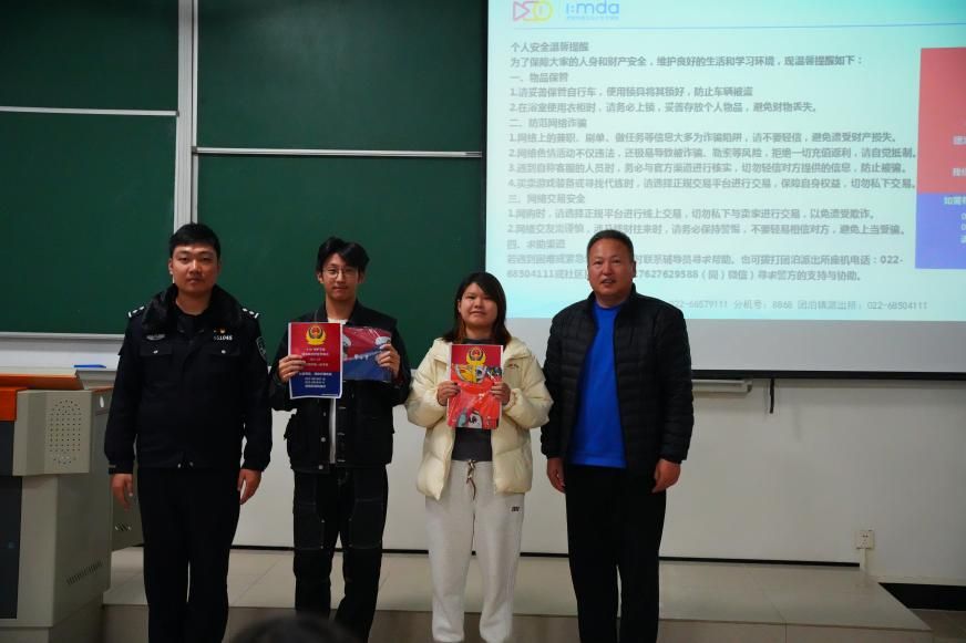 为进一步提升学生防范电信网络诈骗的意识和能力,夯实平安校园建设基础,近日,数智传媒与设计艺术学院联合知行社区共同开展“筑牢安全防线,远离电信诈骗”主题教育活动。团泊镇派出所民警窦占峰、学校保卫处处长林宪用、学院党总支书记王宁、副书记范萌萌及全体辅导员参加活动。