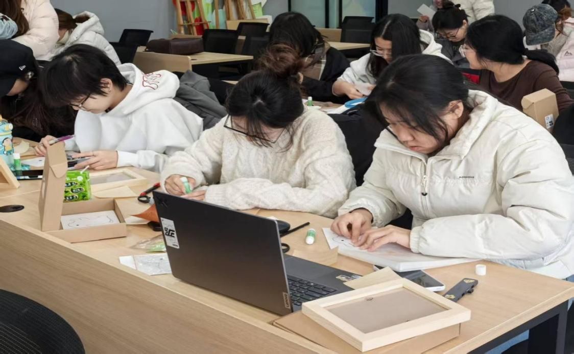 2025级动画专业乔轵、徐泽明同学同学带大家了解了木皮画的历史渊源和文化内涵,参与学生在指导下进行木皮画创作,将现代设计元素与传统工艺相结合,完成个人作品。此次体验不仅让大家亲手触摸到非遗技艺的温度,更在创作中加深了对传统文化的理解与认同,为非遗的当代传承注入了青春创意。