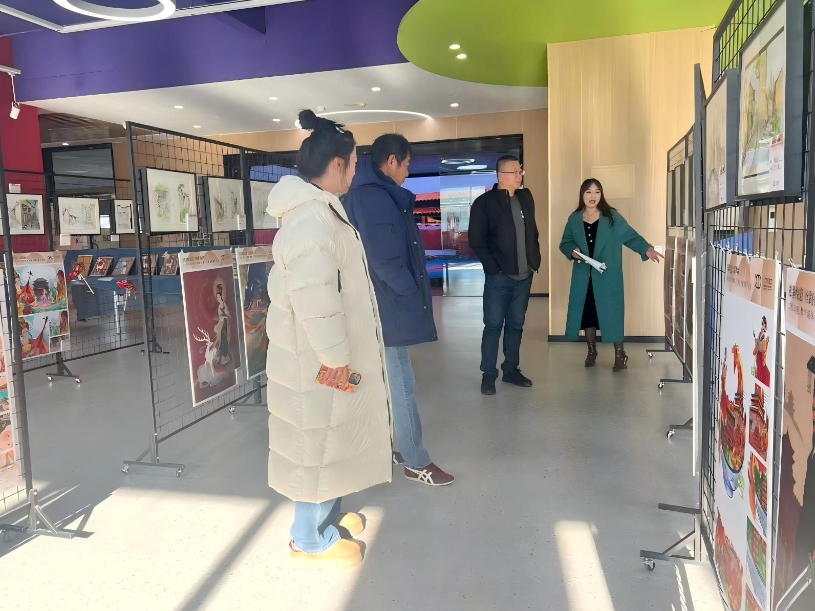 随后,在数智传媒与设计艺术学院老师的引导下,参观沉浸式虚拟空间实验室、艺术展厅,观摩动画与数字媒体艺术专业实践作品展。