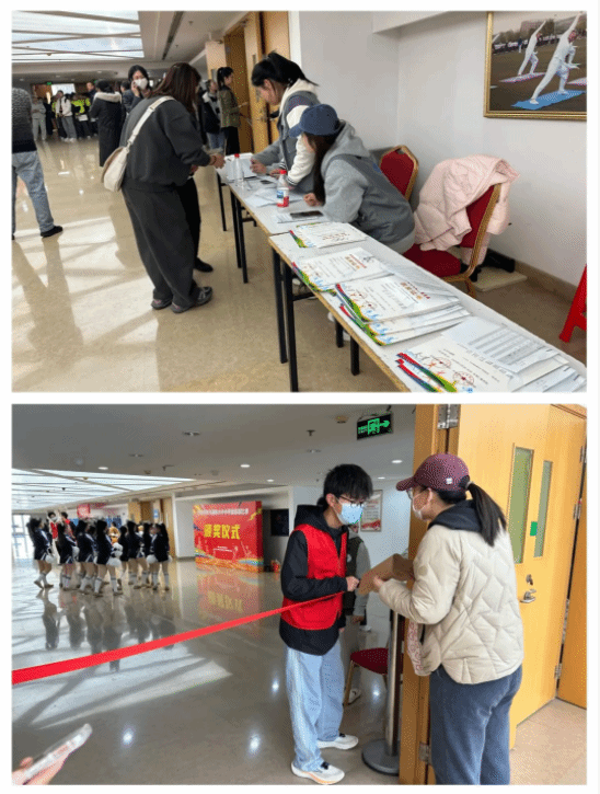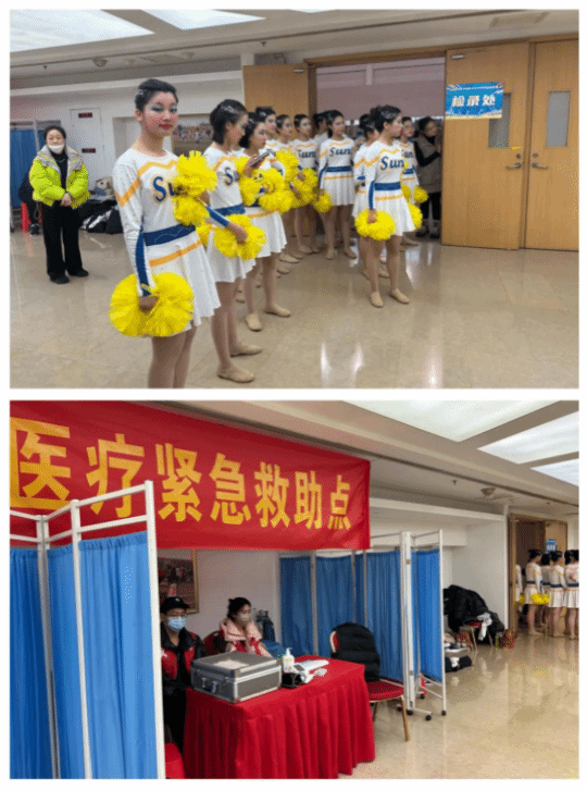 本次比赛拥有专业高效的赛事保障团队,涵盖赛事组织协调、场地设备维护、医疗应急服务、后勤补给支持等多个岗位。各岗位各司其职、衔接顺畅,场地维护组提前检查调试音响、灯光等,保障赛场环境安全规范,医疗组随时待命,为运动员提供及时的健康保障,同时,来自仁爱学院的30余名志愿者们活跃在赛场的各个角落,他们协助引导参赛队伍入场、维持现场秩序、分发赛事资料,用热情的笑容和细致的服务为赛事增添了温暖底色。全体保障人员以尽职尽责的态度、辛勤劳作的身影、认真严谨的作风,共同构筑起赛事顺利进行的坚实后盾,为本次赛事贡献了不可或缺的力量。
