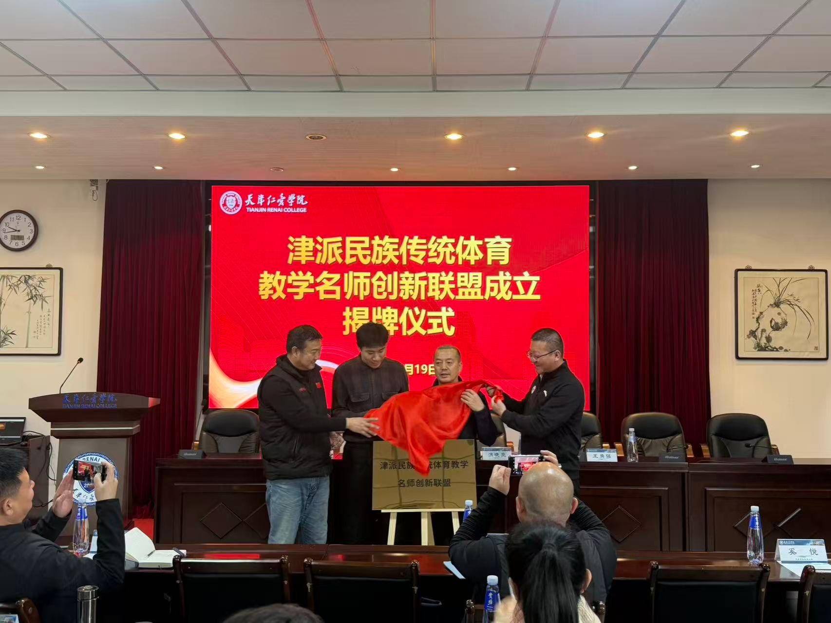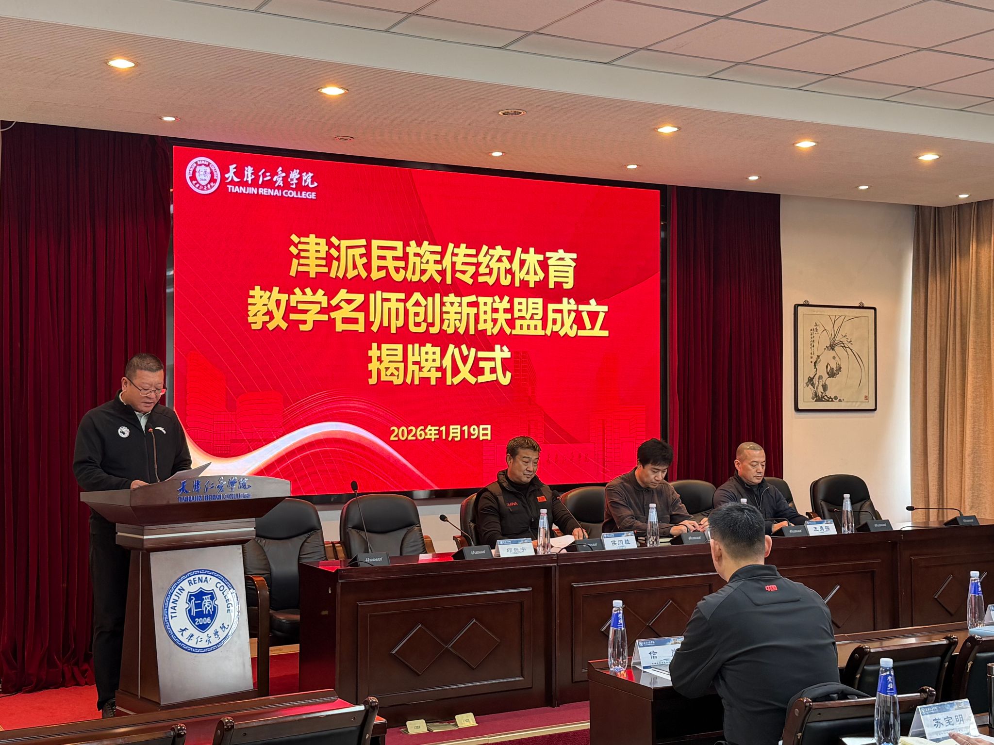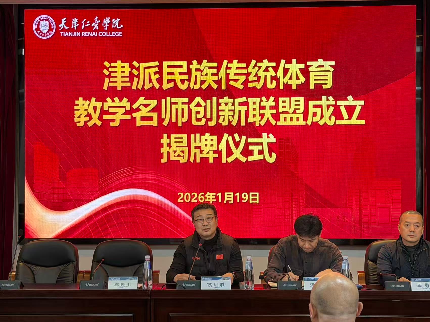 为深入弘扬中华优秀传统体育文化,推动教学实践创新与经验传承,1月19日上午,津派民族传统体育教学名师创新联盟揭牌仪式在天津仁爱学院会议室隆重举行。天津市民族和宗教事务委员会二处副处长洪晓亮、天津市体育局群体处三级调研员王勇强、天津师范大学教学名师代表侯闫胜教授等与会嘉宾出席仪式,天津仁爱学院体育学院院长、书记邱振宇主持仪式。