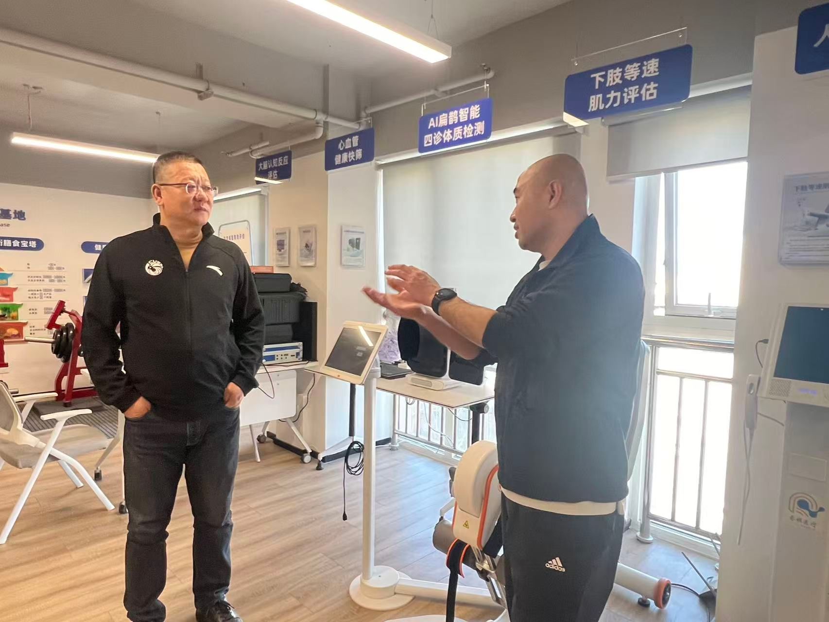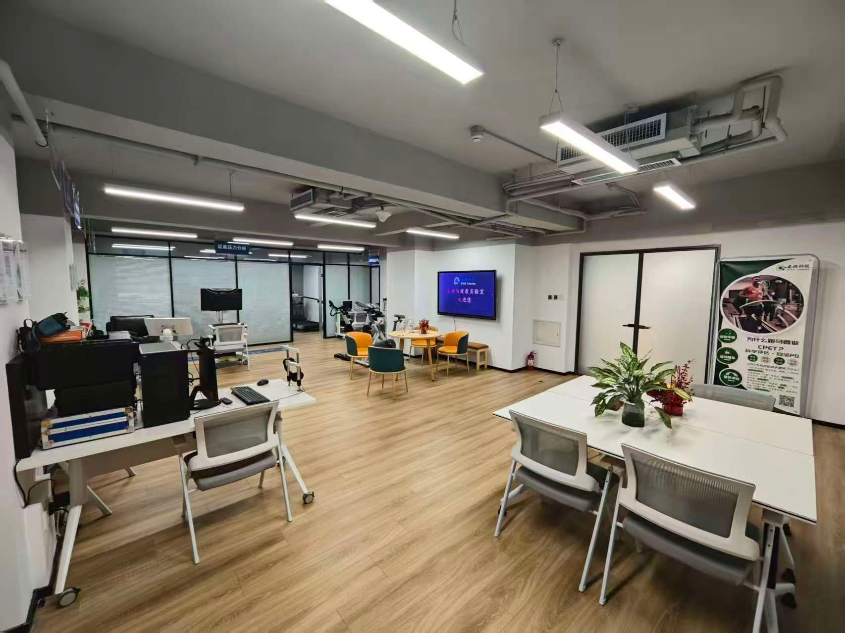该实验室是企业产学研一体化创新体系的核心载体,以人体机能衰老量化评估为核心竞争力,构建了多维度健康测评体系,拥有多项自主研发专利技术,形成了成熟的体医融合成果转化路径。调研期间,体育学院一行实地查看了实验室核心测评系统与技术设备,听取了实验室领衔人、中国医学科学院北京协和医学院生物医学工程研究所副研究员王磊博士关于实验室建设、核心技术攻关、产学研用发展的情况介绍,随后校企双方围绕体育科研数据采集、运动干预研发、全民健身服务等核心议题深入研讨,在资源共享、技术攻关、平台共建等方面达成广泛共识。