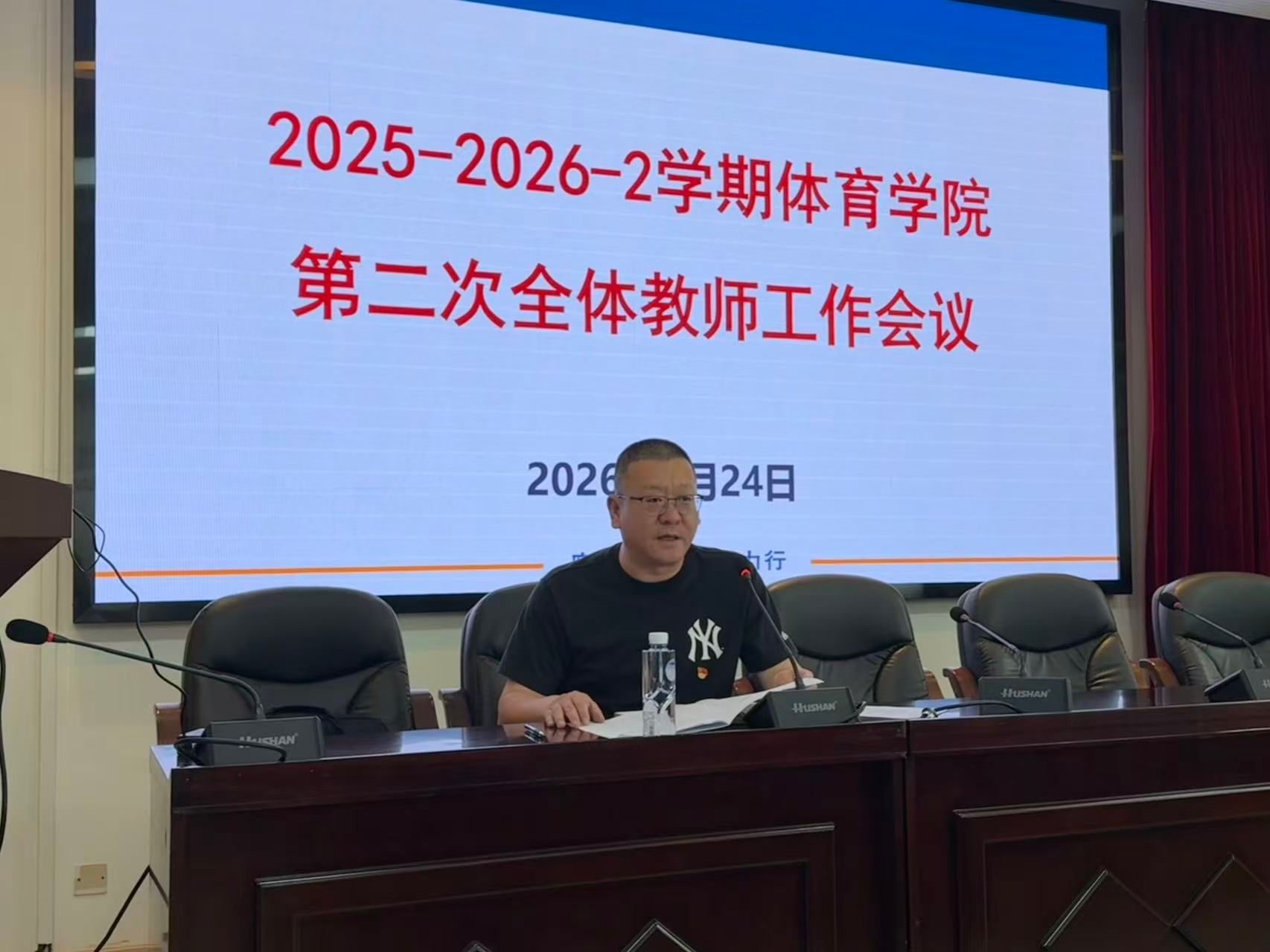 为全面落实学校关于2025-2026学年第二学期工作部署,锚定学院发展规划总体目标,扎实推进各项重点工作落地见效,全力做好本科教学合格评估冲刺攻坚,3月24日,体育学院召开2025-2026-2学期第二次全体教师工作会议。会议由体育学院院长邱振宇主持,全体教师参会。
