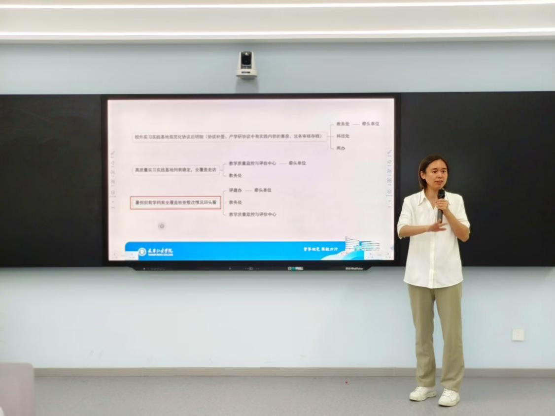 刘岩副院长详细介绍了目前评估工作的落实进度,对各项指标完成情况进行了深入分析,指出了工作中存在的真空区。针对下一阶段工作,从材料完善、流程优化、细节打磨等方面进行了周密部署,明确各部门及教师的具体任务与时间节点。