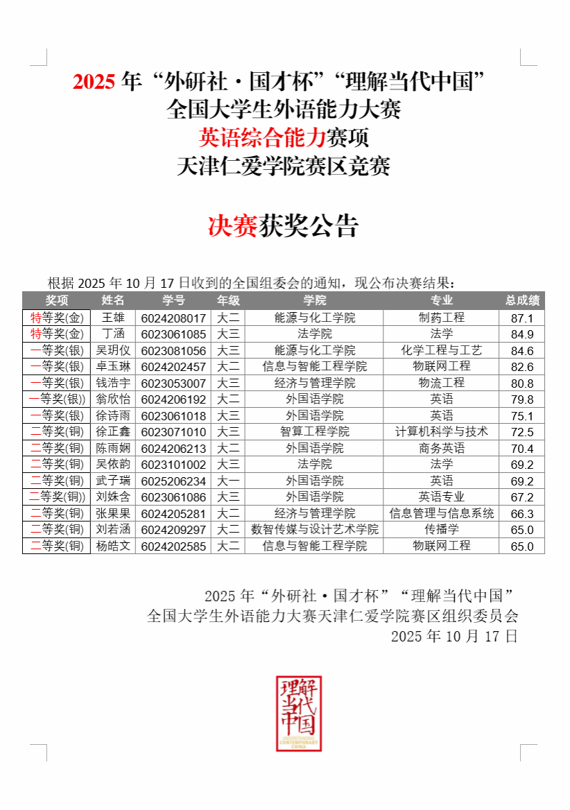 2025"理解当代中国"综合能力校决赛获奖公告