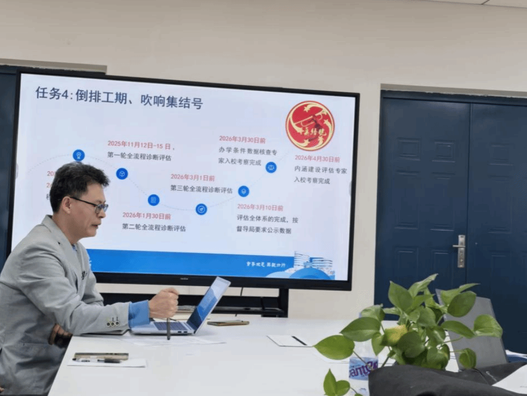 续主任强调,评估工作时间紧、任务重,必须严格按照学校“倒排工期”的安排推进各项工作。具体时间节点包括:2025年10月24日至26日完成第一轮全流程模拟演练;2025年11月12日至15日完成第一轮全流程诊断评估;2026年1月30日前完成第二轮全流程诊断评估;2026年3月1日前完成第三轮全流程诊断评估;2026年3月30日前完成办学条件数据核查和专家入校考察;2026年4月30日前完成内涵建设评估专家入校考察。续主任要求各教研室和教师个人根据这些时间节点制定详细的工作计划,确保每项任务按时完成。