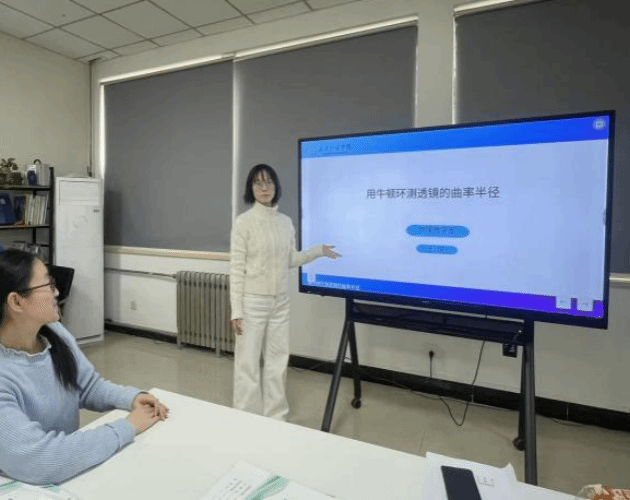 王悦带领的团队进行实验教学和理论教学相结合,以牛顿环测凸透镜曲率半径为载体,引导学生细致观察干涉条纹的形态、疏密与分布规律,将实验现象与薄膜干涉理论深度结合。通过实验数据的测量、处理与理论公式的推导验证,帮助学生夯实理论认知,提升理论联系实际的科学探究能力。