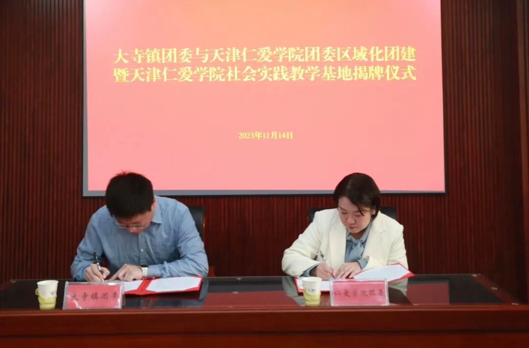 11月14日,共青团天津仁爱学院委员会与共青团天津市西青区大寺镇委员会共建实践育人共同体签约揭牌仪式在大寺镇政府顺利举行。大寺镇团委书记王伟超、我校团委副书记郭楠楠、校团委老师杨璐璐出席会议。天津仁爱学院学生代表、大寺镇各村居团组织负责人40余人参加。
