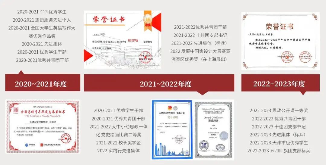 王明宇,男,22岁,汉族,中共党员,天津仁爱学院建筑学院2020级建筑学专业2班学生,班级团支部书记。大四学年综合考评排名专业第二(2/96)。曾荣获优秀共青团干部、十佳团支部书记、校长奖学金、天津思政一体化绘画比赛二等奖、思政公开课一等奖、天津市级优秀学生、国家奖学金等38项个人荣誉称号。曾带领班级荣获先进集体(标兵)、五四红旗团支部(标兵)等集体荣誉称号。