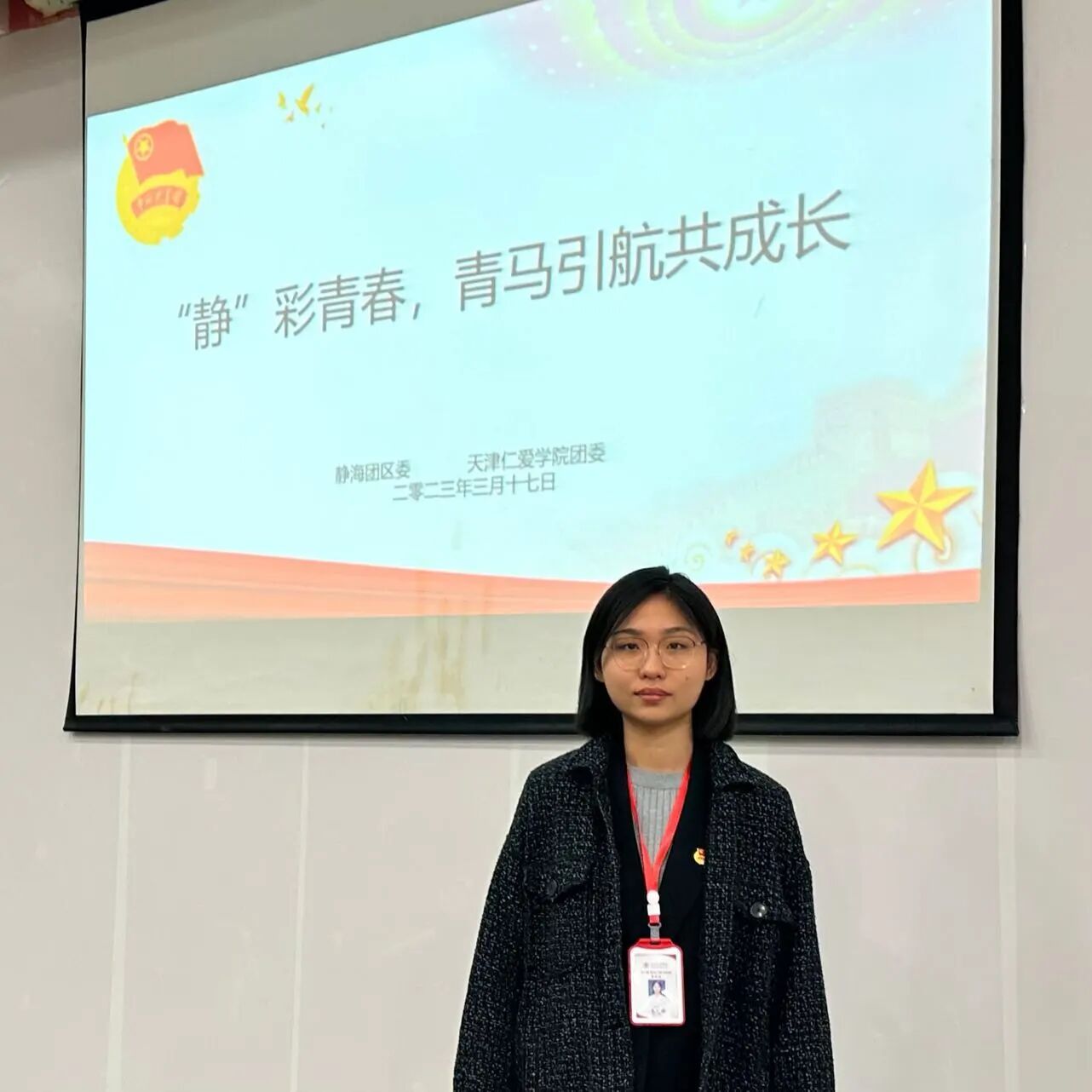 在党的引领下,顾天琳认真学习各类知识理论,不断充实自我,为理想信念的正确方向奠定了坚实的基础。她坚持定期向党组织递交思想汇报,在天津大学访学期间也不曾间断。代表首批访学学生向仁爱学院和天津大学两校领导汇报访学收获,学院招生办也对顾天琳进行了个人专访。她积极参加各类活动,不断增强个人“软实力”,大一时加入学生会新媒体完成相关工作,大三学年光荣的成为了首批校级“青马工程”培训班学员,并代表全体学员在开班仪式上发言,代表仁爱学院校级青马工程全体学员与静海区区委青马工程学员进行交流学习。通过为期一年的培训,获评“青马工程优秀学员”称号。