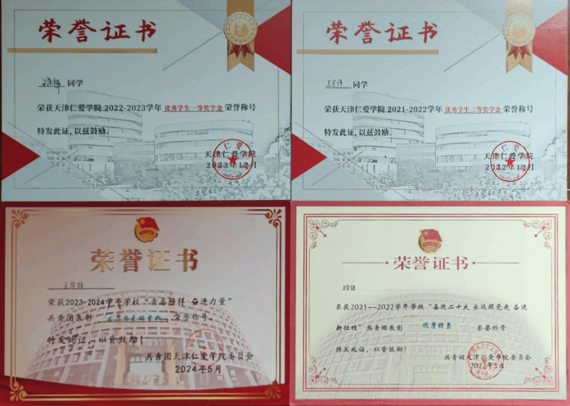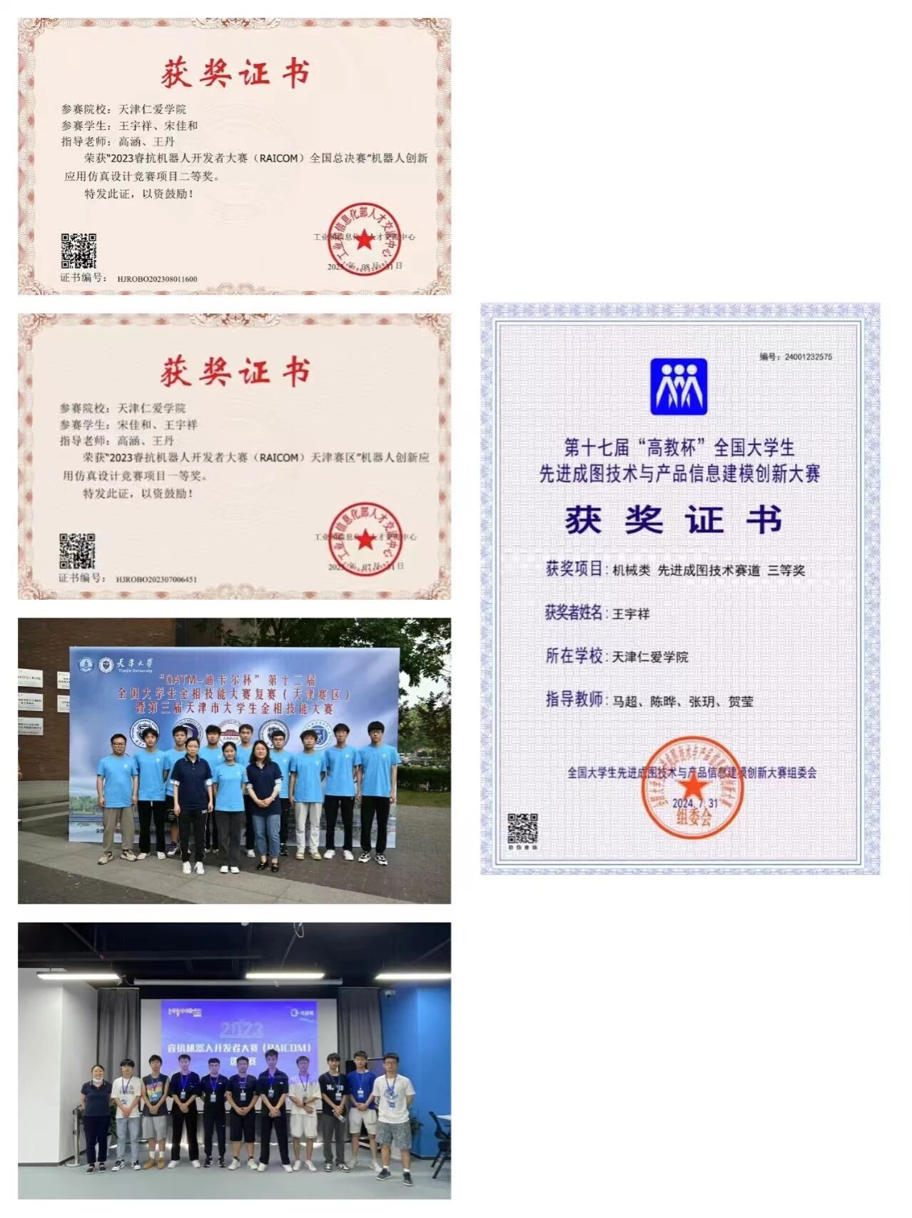 王宇祥,天津仁爱学院机械工程学院2021级机械设计制造及其自动化专业4班班长。他在学习上对新知识、新技术的学习热情极高,主动利用业余时间充电,取得多项与学习相关的专业证书。他严于律己,宽以待人,凝聚团队力量,有力推动了班级各项工作的顺利开展。曾荣获校级“优秀学生一等奖学金”、校级“优秀共青团干部”等荣誉。他积极参加专业竞赛,提升专业技能,在校期间获得专利1项,国家级奖项2项,省市级奖项7项。