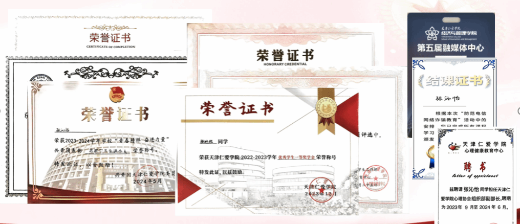 纸上得来终觉浅,于是她将理论知识转化为实践行动,积极参与社团活动和志愿服务,以实际行动服务社会。担任经济与管理学院第六届融媒体中心副主席,曾主持经济与管理学院第五届融媒体中心换届大会,组织经济与管理学院第五届融媒体中心“技能点满,事‘办’功倍”网络思政素质能力提升培训班和第六届融媒体中心换届暨表彰大会。组织经济与管理学院“津沽红石榴共筑中国梦 ——最美相会 津和一家”等活动十余项。除此之外,运营天津市网络思政名师工作室经彩一课视频号,多个视频获高点赞高播放量。
