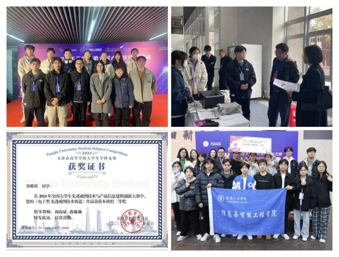 郑雅琪热衷于电子信息类竞赛,勇于尝试、敢于实践,独立完成了许多科技作品。大一学年,其所参与的《基于3D建模、扫描技术及机器学习智能推荐搭配系统》,在“挑战杯”天津市大学生课外学术科技作品竞赛获推市级。大二学年开始,凭借其扎实的专业基础,她成为了学院创新实验室的一员,积极参与多项竞赛培训,以更专业的姿态接触到了各项电子信息类赛事,并潜心深耕,展现了其突出的创新思维和实践能力。在2024年全国大学生先进成图技术与产品信息建模创新大赛中,荣获本科组二等奖;在2024年“启诚杯”第十三届天津市人工智能电脑鼠竞赛竞速赛道中,荣获天津市二等奖;在第七届天津市大学生“新工科”工程实践创新技术竞赛自主赛道中,荣获天津市二等奖。