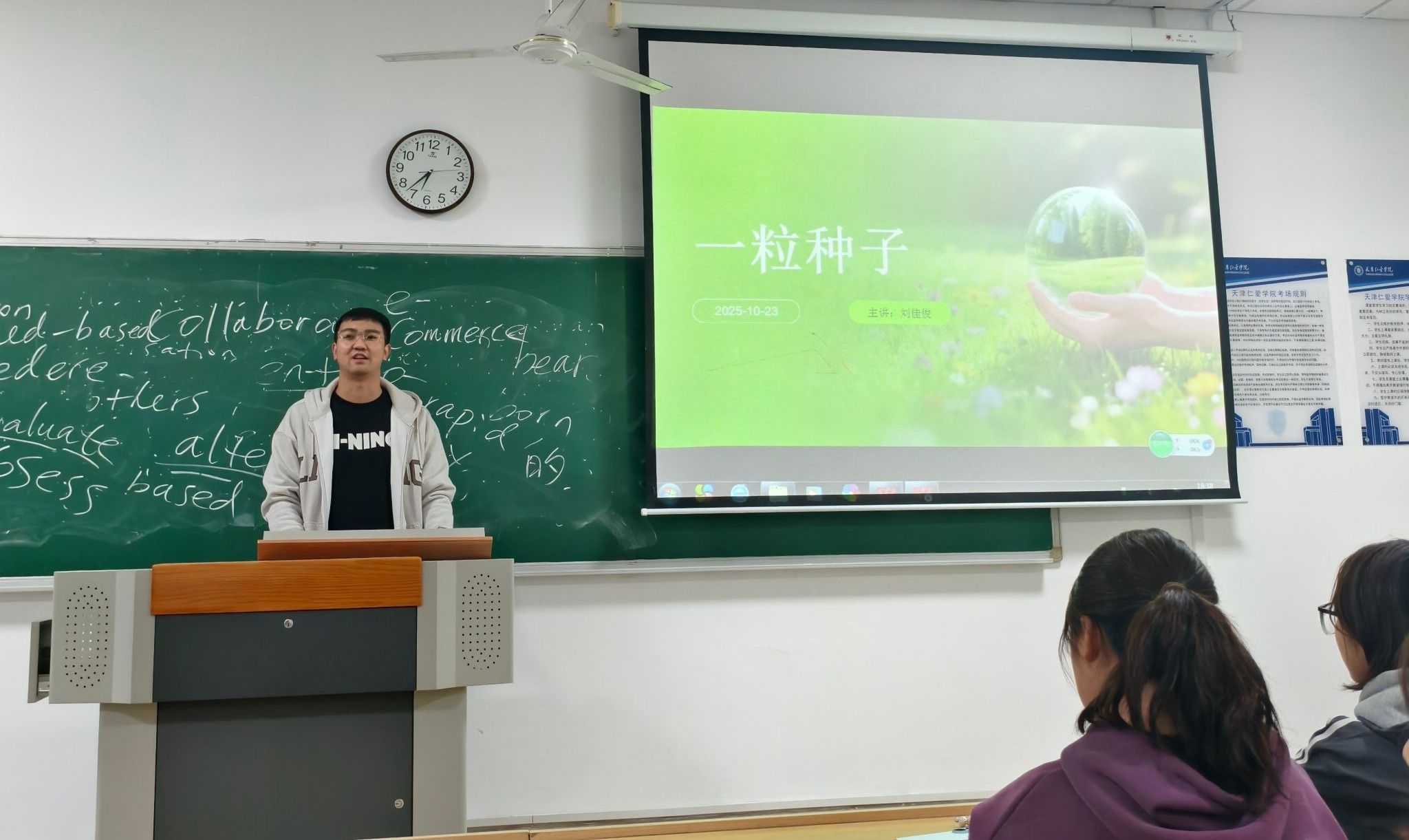 为服务青年成长,拓宽知识视野,10月23日,青年夜校邀请外国语学院辅导员刘佳俊老师带来一堂别开生面的农业主题小课堂。他以丰富的内容,吸引了众多对农业知识“零基础”的同学积极参与,让大家在课堂中感受农业魅力、树立粮食安全意识、感悟人生成长。