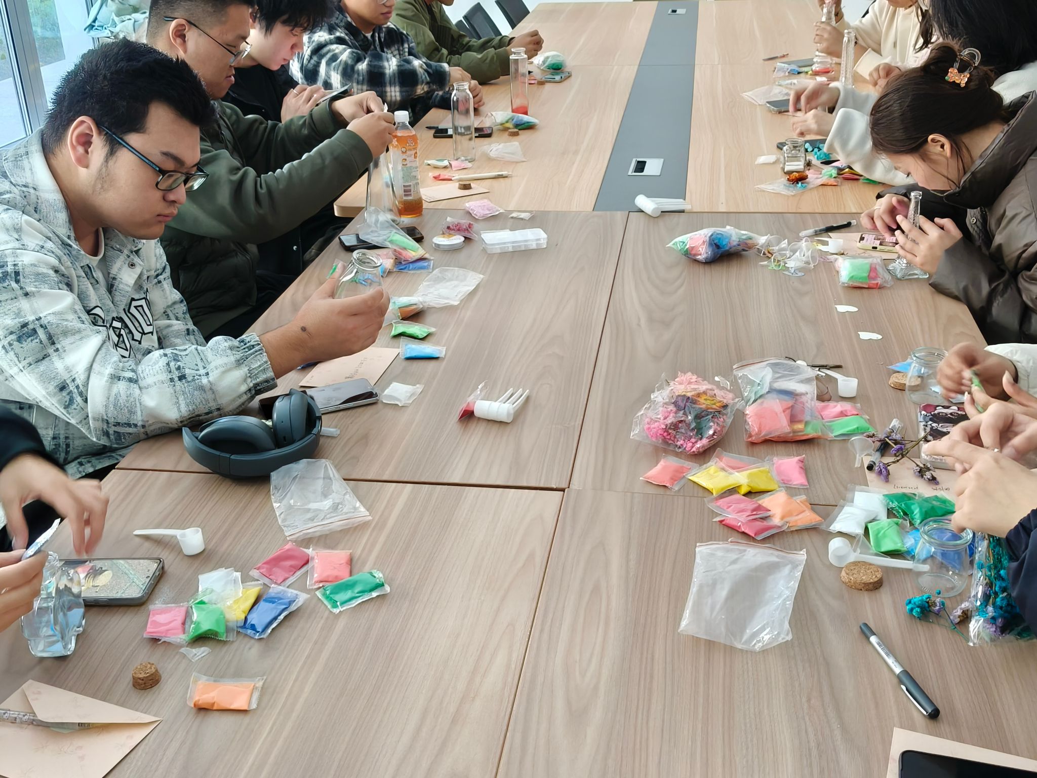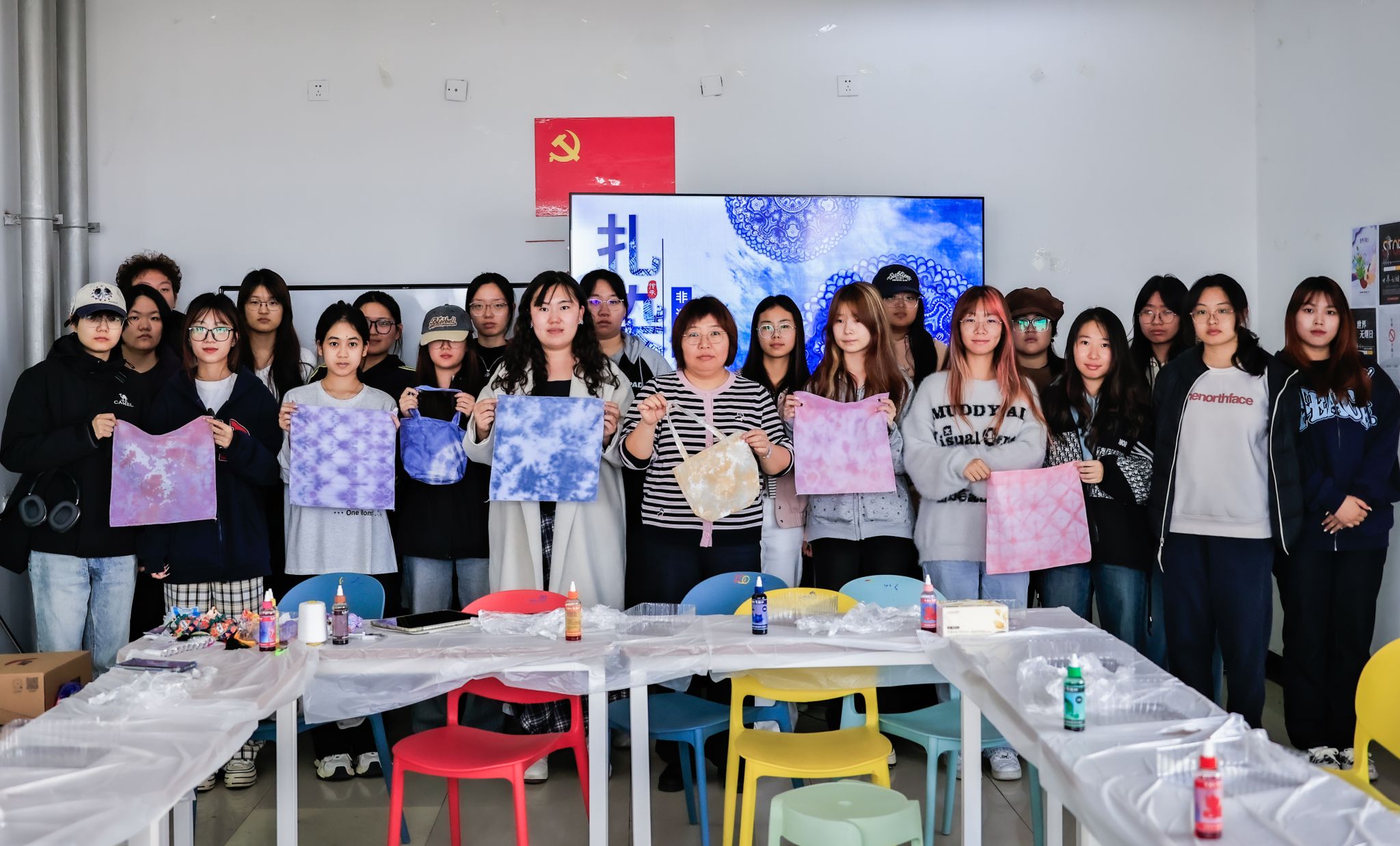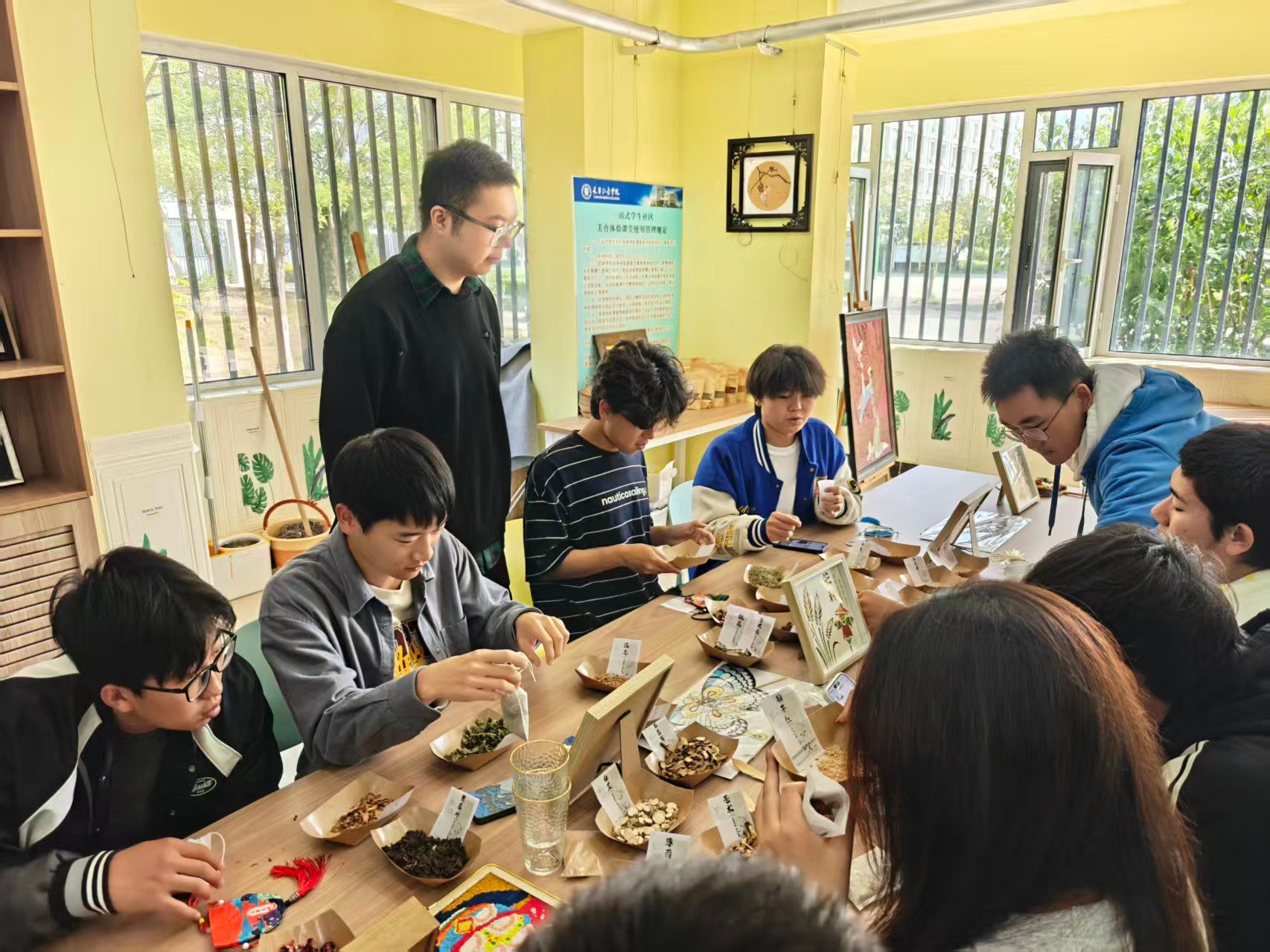 通过沉浸式体验引导学生达到“积极投入”的福流状态。无论是彩绘石膏时的全神贯注,还是缝制香囊、捆扎染布时的指尖专注,抑或是黏土塑形时的触觉沉浸,学生们在放下杂念、全然创造的过程中,有效提升了专注力,学会了在当下任务中获取满足与能量,对抗焦虑与压力。