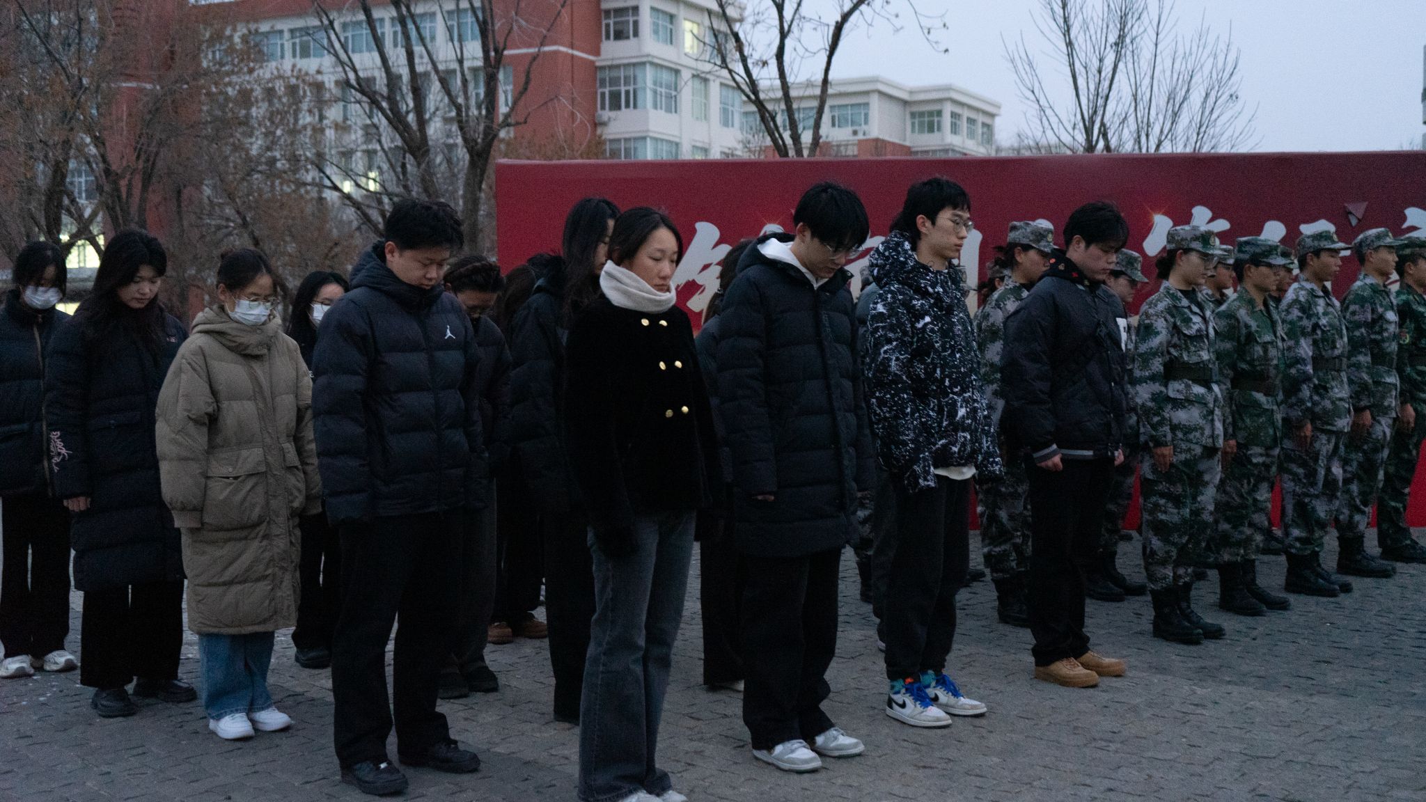 在飘扬的国旗下,全体师生默哀一分钟,沉痛悼念遇难同胞和革命烈士。现场肃穆庄严,每个人心中涌动着深切的哀思与崇高的敬意。这一刻,铭记历史、珍爱和平的信念更加坚定,传承遗志、开创未来的决心愈发强烈。