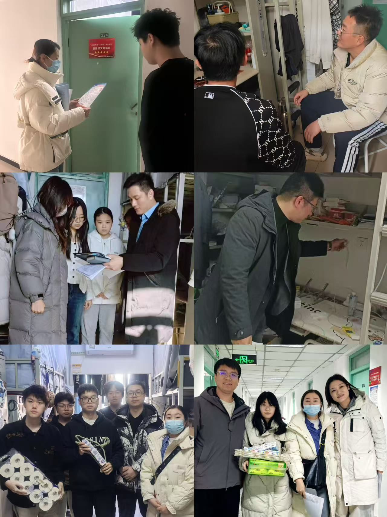 颁奖过程中,老师们深入各获奖宿舍,与同学们亲切交谈,细致查看宿舍环境,对大家在内务整理、文化建设等方面的成果给予肯定。随后,现场为同学们颁发定制生活用品等奖品,亲手递上荣誉证书,并鼓励大家保持优良作风,发挥榜样作用。