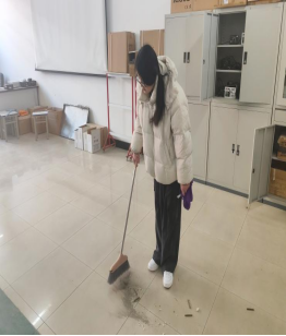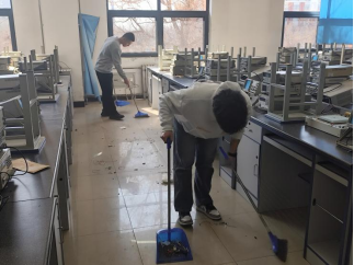 2月24日中午,信息与智能工程学院团总支书记杨光、学院2024级年级组长赵宁组织多名青年志愿者携带清洁工具在第一实验楼二楼,对实验室等区域的卫生展开全面打扫。用实际行动诠释了 “劳动最光荣”的内涵,为广大师生提供了干净整洁的学习环境。