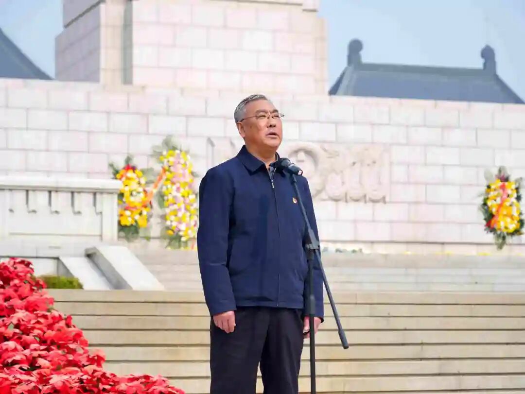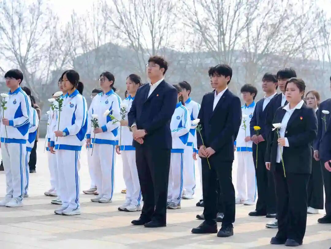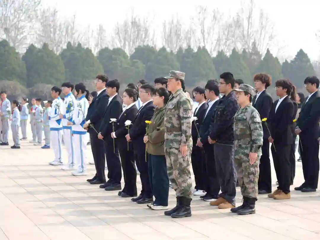 嘹亮的国歌声响彻陵园上空,全体人员肃立致敬。和平区军休所老战士宣讲团成员赵全顺同志,以亲身经历为蓝本,讲述了革命英烈们不畏牺牲、奋勇拼搏的鲜活故事,没有华丽的辞藻,却有最真挚的情感,让在场的每一位学生都深受触动。在敬献鲜花环节,师生们依次走向纪念碑,将手中的白色鲜花摆齐,随后绕行纪念碑,驻足瞻仰,以最质朴的方式,表达对革命先烈的深切哀思与崇高敬意。