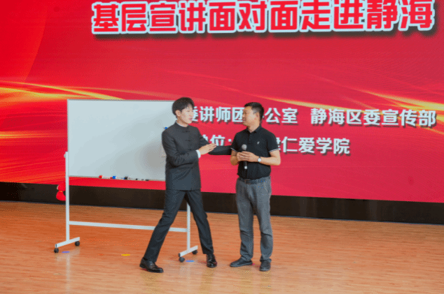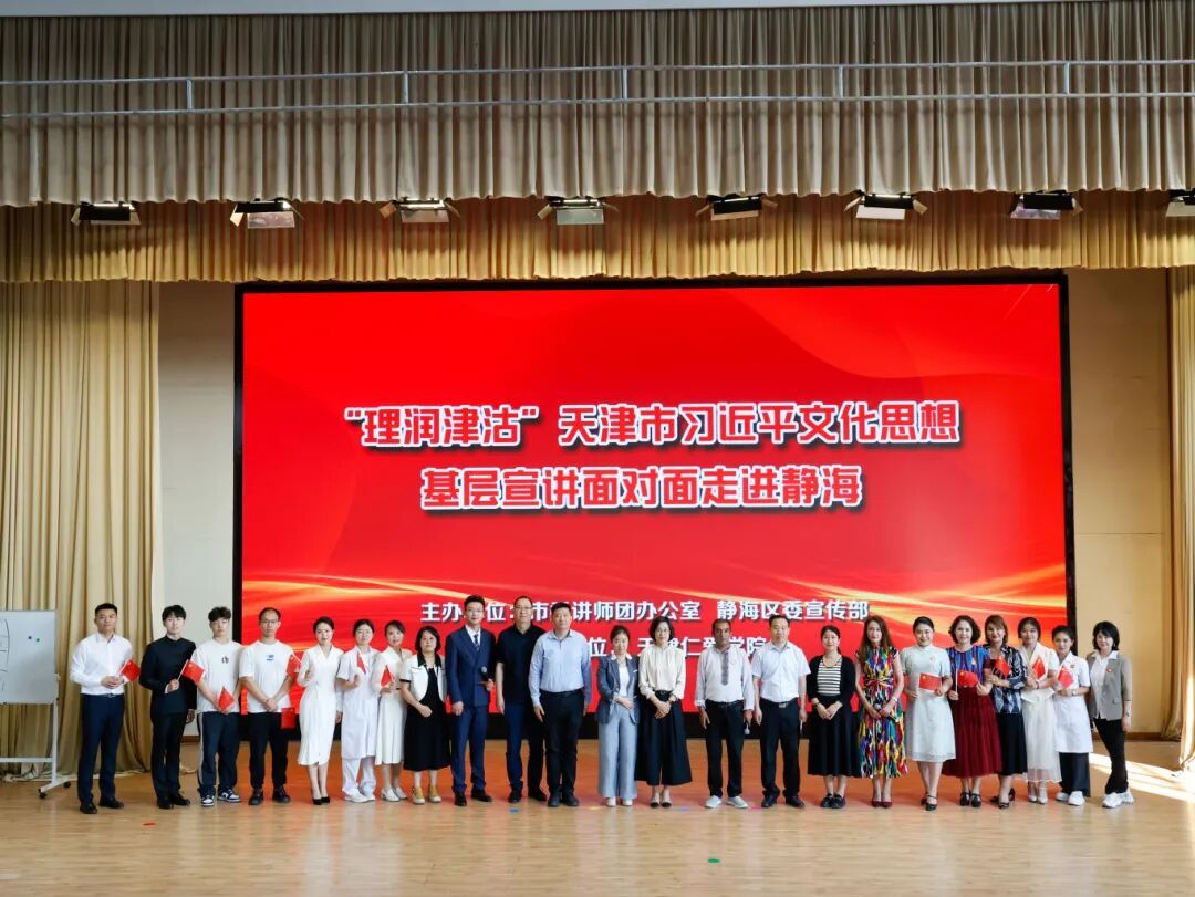 为深入学习贯彻习近平文化思想,全面落实习近平总书记视察天津重要讲话精神,进一步加强区域间理论宣讲的深度交流互鉴,讲好天津在推动文化传承发展上善作善成的生动故事,由天津市委讲师团办公室、静海区委宣传部共同主办的“理润津沽”天津市习近平文化思想基层宣讲面对面活动近日在天津仁爱学院举办。市委讲师团、静海区委、新疆和田“援定南疆 情牵和田”主题宣讲团、天津中医药大学、天津体育学院、天津仁爱学院领导以及市委讲师团办公室有关同志、各区委宣传部理论宣讲的分管同志出席活动。静海区委常委、区委宣传部部长郭颖同志致辞。
