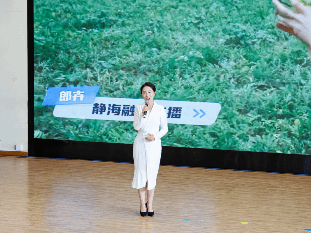 静海区融媒体中心的记者、播音员郎卉从日常采访以及新闻视角切入,从经济、交通、文旅、农业多角度讲述了静海区这些年来的高质量发展。