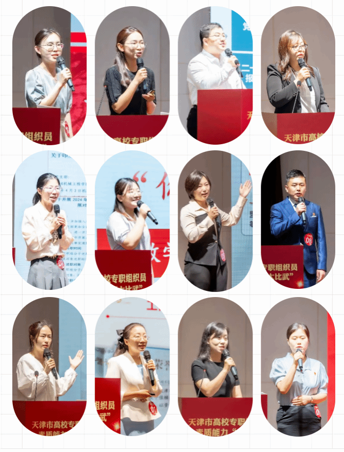 本次“大比武”共设置三个比赛环节,基础知识测试环节考察组织员的理论素养和业务知识,结构化面试环节考察组织员综合运用专业知识分析问题、研判问题、解决问题的能力,总决赛通过演讲展示考察组织员对自身工作规律的把握、思考与实践的综合能力。全市五十多所高校选拔推荐77名组织员参加了比赛。经过激烈角逐,天津科技大学张琳、天津师范大学戴蕾、天津城市建设管理职业技术学院张冰洁荣获大赛一等奖;天津医科大学宋欣欣、天津商业大学申巳暄、天津大学王玉、天津师范大学王伊杰荣获大赛二等奖;天津农学院刘燕、天津体育学院程鹏举、天津滨海汽车工程职业学院魏潇、天津电子信息职业技术学院张凯悦、天津仁爱学院魏雷荣获大赛三等奖。同时,天津大学、天津师范大学、天津医科大学、天津科技大学、天津体育学院、天津农学院、天津仁爱学院等7所高校荣获优秀组织奖。