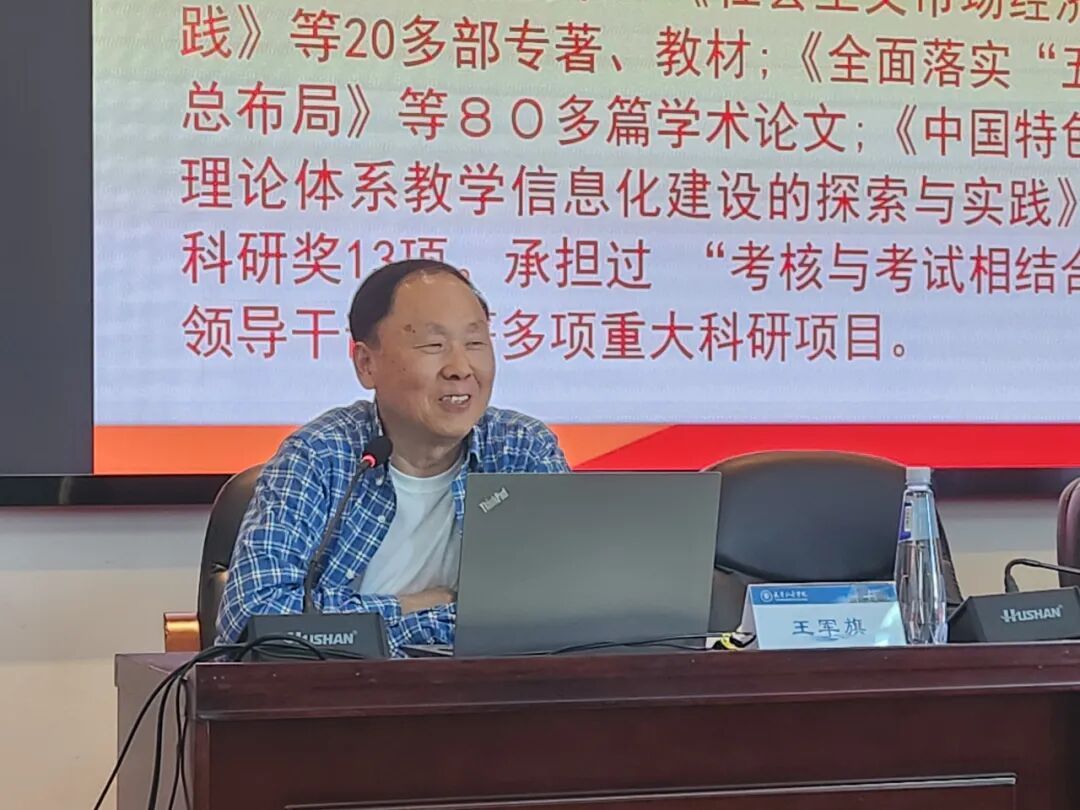 王军旗教授,“四个一批”国家级理论人才,全军育才奖金奖获得者,原国防大学名师、教授、博士生导师,现任天津大学马克思主义学院教授、博士生导师。主要教研成果:《社会主义市场经济理论与实践》等20多部专著、教材;《全面落实“五位一体”总布局》等80多篇学术论文;《中国特色社会主义理论体系教学信息化建设的探索与实践》等教学、科研奖13项。承担过 “考核与考试相结合选择团级领导干部”等多项重大科研项目。