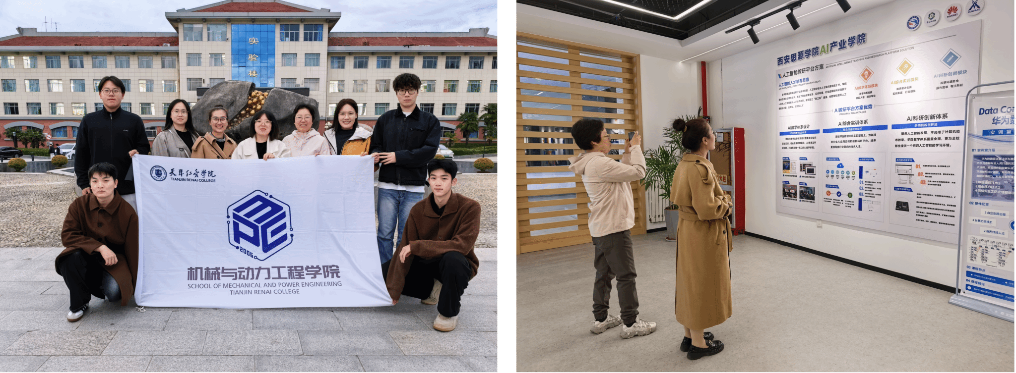 首站抵达西安思源学院,在校友郝丽娟的带领下实地参观了该校的AI产业学院等实验室,同时详细听取了该校在审核评估指标解读、材料规范准备、特色亮点提炼及问题整改落实等方面的实操经验。
