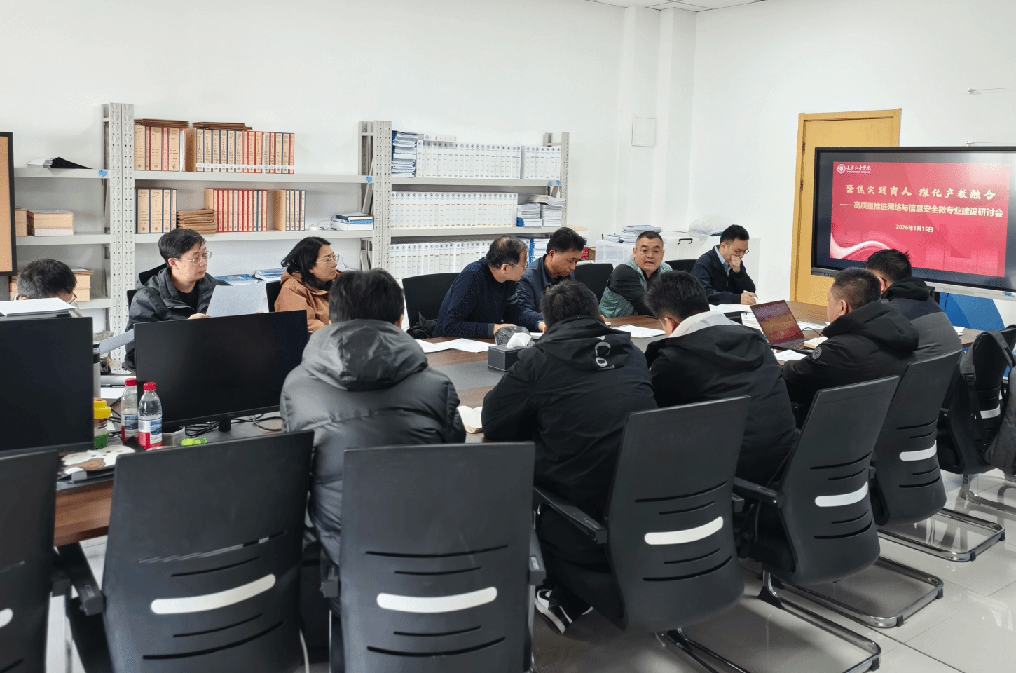 为高质量推进天津仁爱学院网络与信息安全微专业建设,凝聚校企协同育人共识,明确核心建设任务与发展方向,2026 年 1 月 15 日上午,在行政楼五层评建工作会议室成功召开《网络与信息安全》微专业建设专题研讨会。会议邀请天津大学智能与计算学部冯志勇教授团队莅临指导,天津犀牛华安企业代表参与交流。天津仁爱学院教务处处长刘民杰、副处长王诚,智算工程学院书记花建锋、院长陈淑鑫、副院长蒋辉等共同参会,围绕微专业的定位、课程体系、教学资源建设等关键问题展开深入研讨。