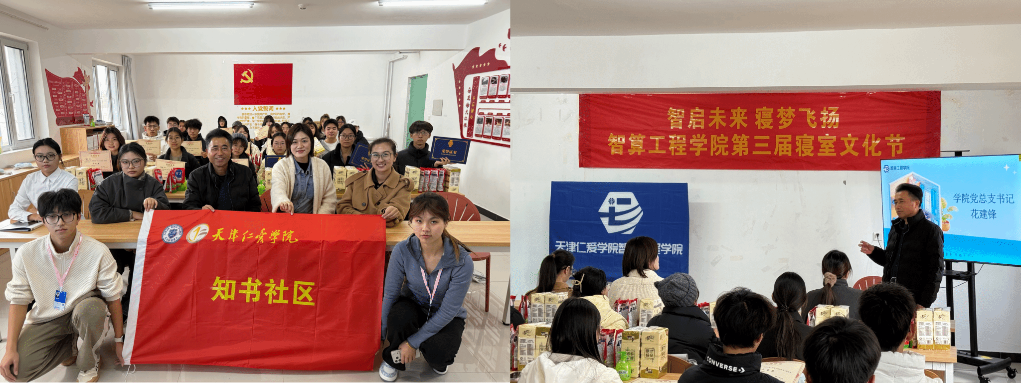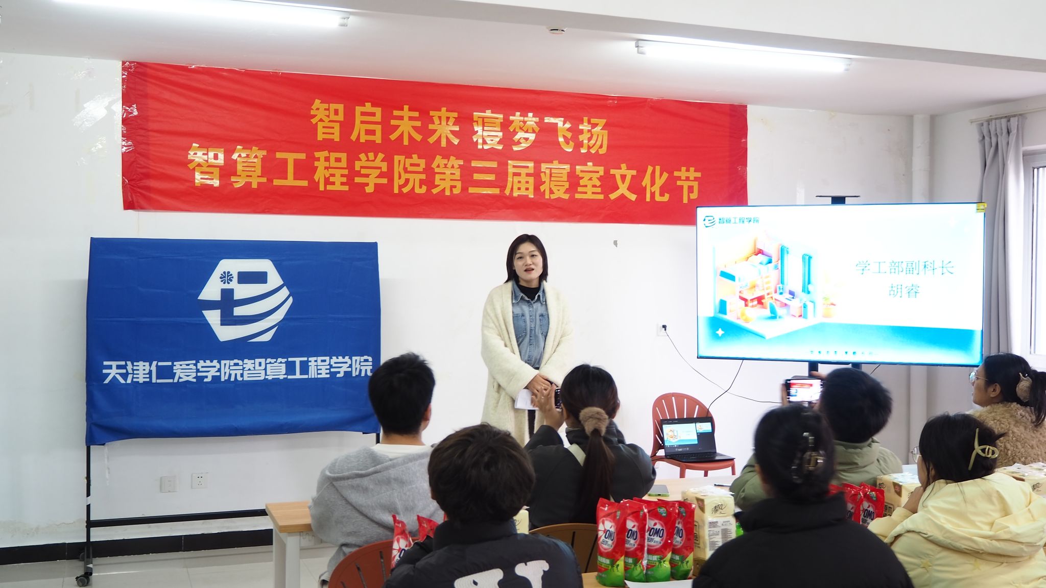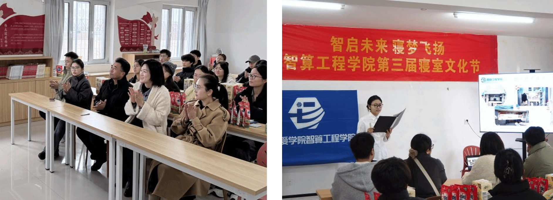 为深入贯彻学校“学风质量年”建设要求,积极配合本科教学合格评估工作,落实“垃圾下楼、宿舍禁烟、环境整洁”等宿舍管理规范,知书社区联合智算工程学院于2025年11月正式启动“智启未来 寝梦飞扬”智算工程学院第三届寝室文化节,本次活动吸引学院六十余个寝室、百余名学子踊跃报名参与,并于11月28日在25宿A106举办表彰大会。智算工程学院党总支书记花建锋、副书记唐伟伟,学工部综合科副科长胡睿和各宿舍代表出席本次活动。