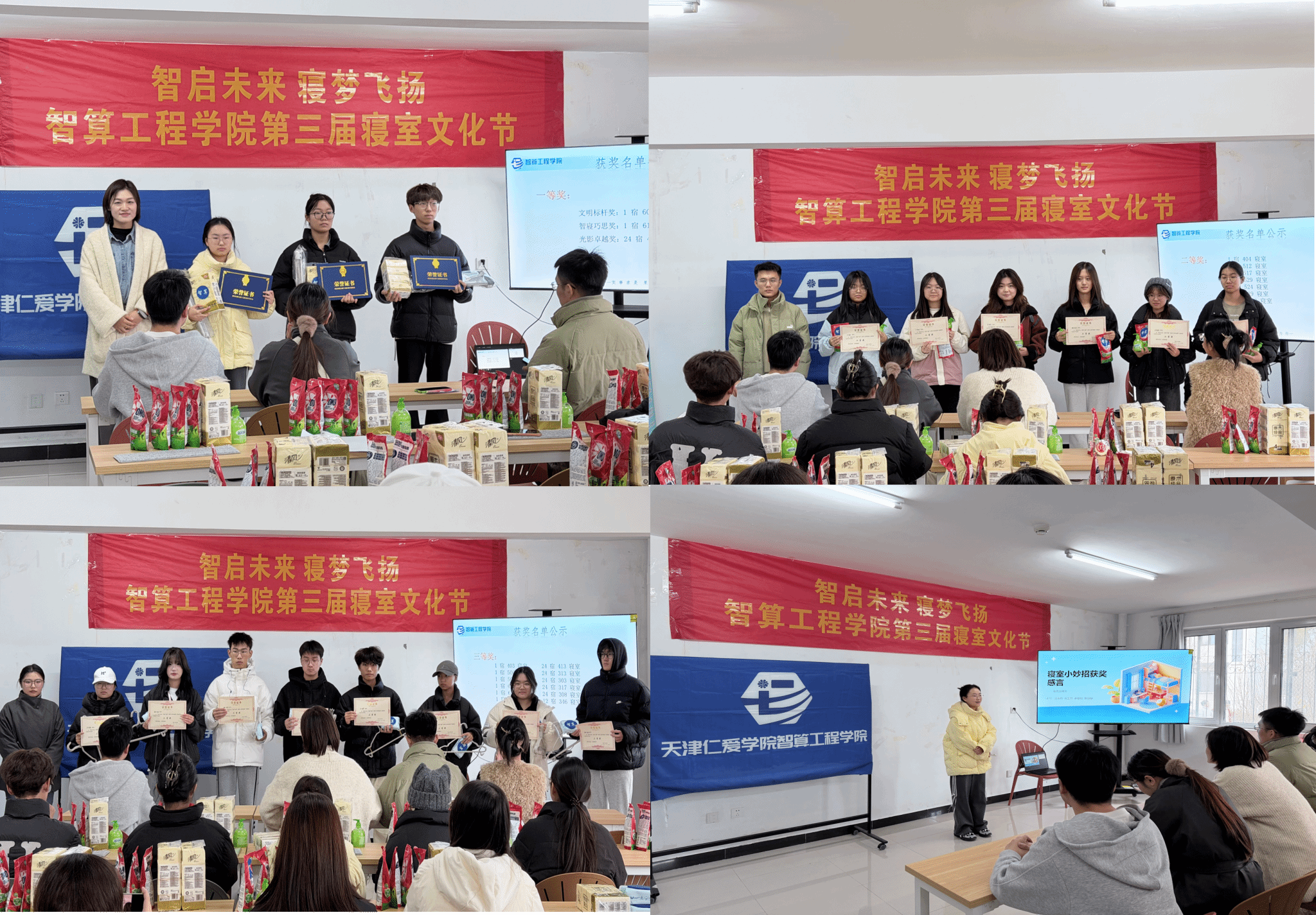 颁奖仪式上,出席领导为获奖寝室依次颁发“文明标杆奖”“智寝巧思奖”“光影卓越奖”等荣誉证书及对应奖品。获奖代表从环境改造、宿舍卫生、学习氛围、室友关系四个方面分享参赛心得,为在场同学提供了诸多可借鉴的宿舍建设经验。