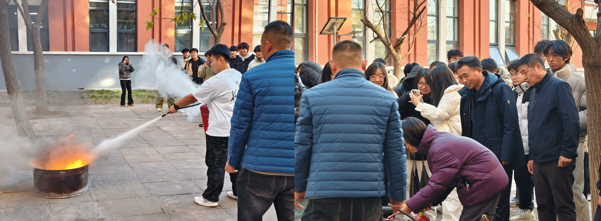 随后在指定场地,学生分组体验灭火流程,将“提、拔、握、压”的口诀转化为规范动作,熟练掌握不同类型灭火器的适用场景与操作技巧。