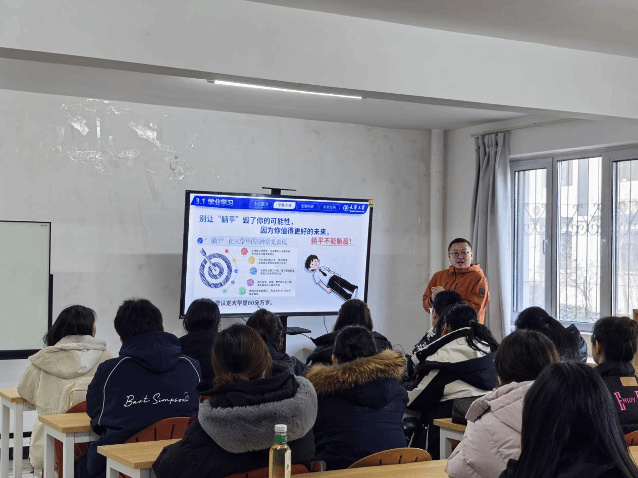 在学业学习板块,张希睿直击“大学60分万岁”的误区,以“时间复利游戏”为喻,通过真实案例提醒同学们“躺平终将透支未来选择权”,还分享了“时间账本”“小步快跑”“情绪出口”三大新生生存技能,鼓励学生积累“能扛事”“会合作”“懂自己”的核心底气,在张弛有度的学习生活中投资自我。科创竞赛与科研实践环节,张希睿详细解读了A、B、C三类竞赛的分类标准与代表性赛事。他结合自身参赛经历,分享了多元化组队的协作技巧及“赛前明确动机、赛中专注打磨、赛后复盘总结”的心态管理方法。针对科研入门,他以大创项目为例,拆解了从选题、申报到成果转化的完整流程,阐明科研对升学、能力提升的重要意义,引导学生以需求为导向,在实践中锤炼批判性思维与团队协作能力。未来规划板块,张希睿围绕考研深造、考公、就业、创业四个板块,结合自身经验与行业趋势给出实用建议。