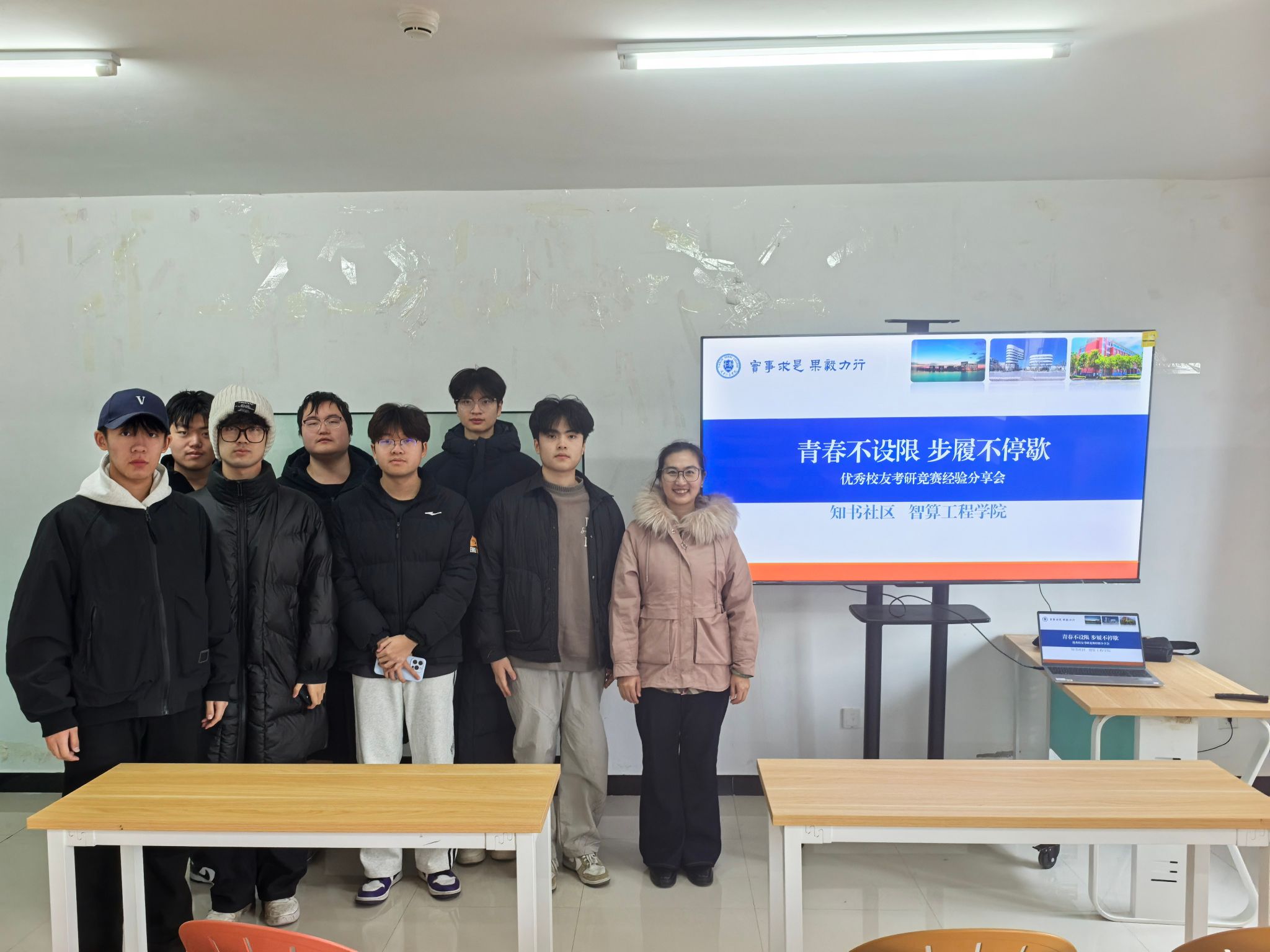 2025年12月24日,智算工程学院与知书社区携手,在25宿A106成功举办了一场以“青春不设限,步履皆成章”为主题的优秀校友经验分享会。此次活动特别邀请了学校优秀毕业生、天津大学在读硕士张希睿作为主讲人,为2025级新生带来了一场内容丰富、启迪深刻的分享盛宴。智算工程学院党总支书记花建锋、副书记唐伟伟,辅导员郝春来参加了本次活动。
