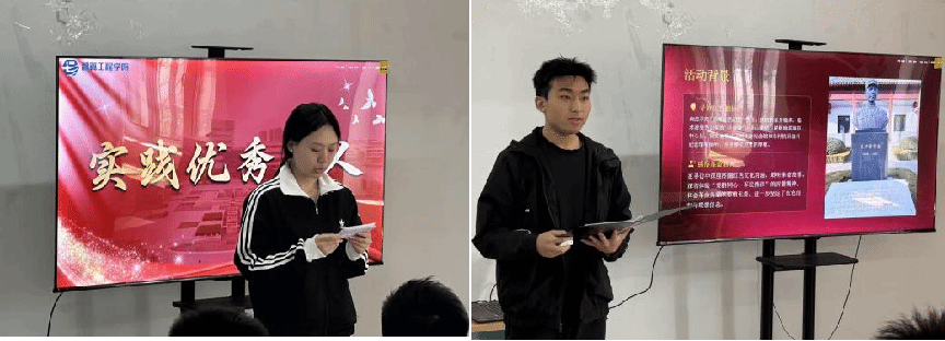 颁奖后,刘欣怡同学分享了其在春节期间的实践感悟,深刻体会到祖国繁荣昌盛背后的奋斗力量,以及革命先辈前赴后继的牺牲与奉献精神;孙国豪同学则通过走访刘少奇纪念馆、英雄朱村等地,深入感悟伟人实事求是的优良作风与军民水乳交融、生死与共的沂蒙精神,带领在场师生沉浸式体悟红色文化的深厚底蕴与强大精神感召力。