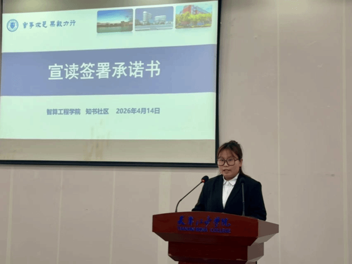 为全面冲刺本科教学工作合格评估,进一步强化学风建设,规范课堂行为,2026年4月14日,天津仁爱学院智算工程学院开展“十分钟·促学风·共迎评”学风建设赋能活动。知书社区副片区长、智算工程学院党总支书记花建锋,院长冯志勇、副院长蒋辉、党总支副书记唐伟伟、团总支书记王军军及全体辅导员、各班学生代表参加此次活动。