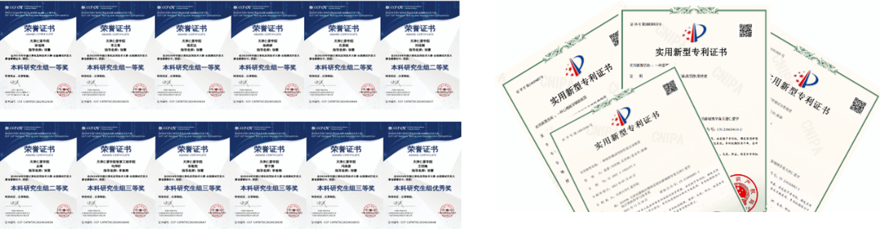 - 获天津市大学生信息技术“新工科”工程实践创新技术竞赛一等奖2项、二等奖2项、三等奖4项;